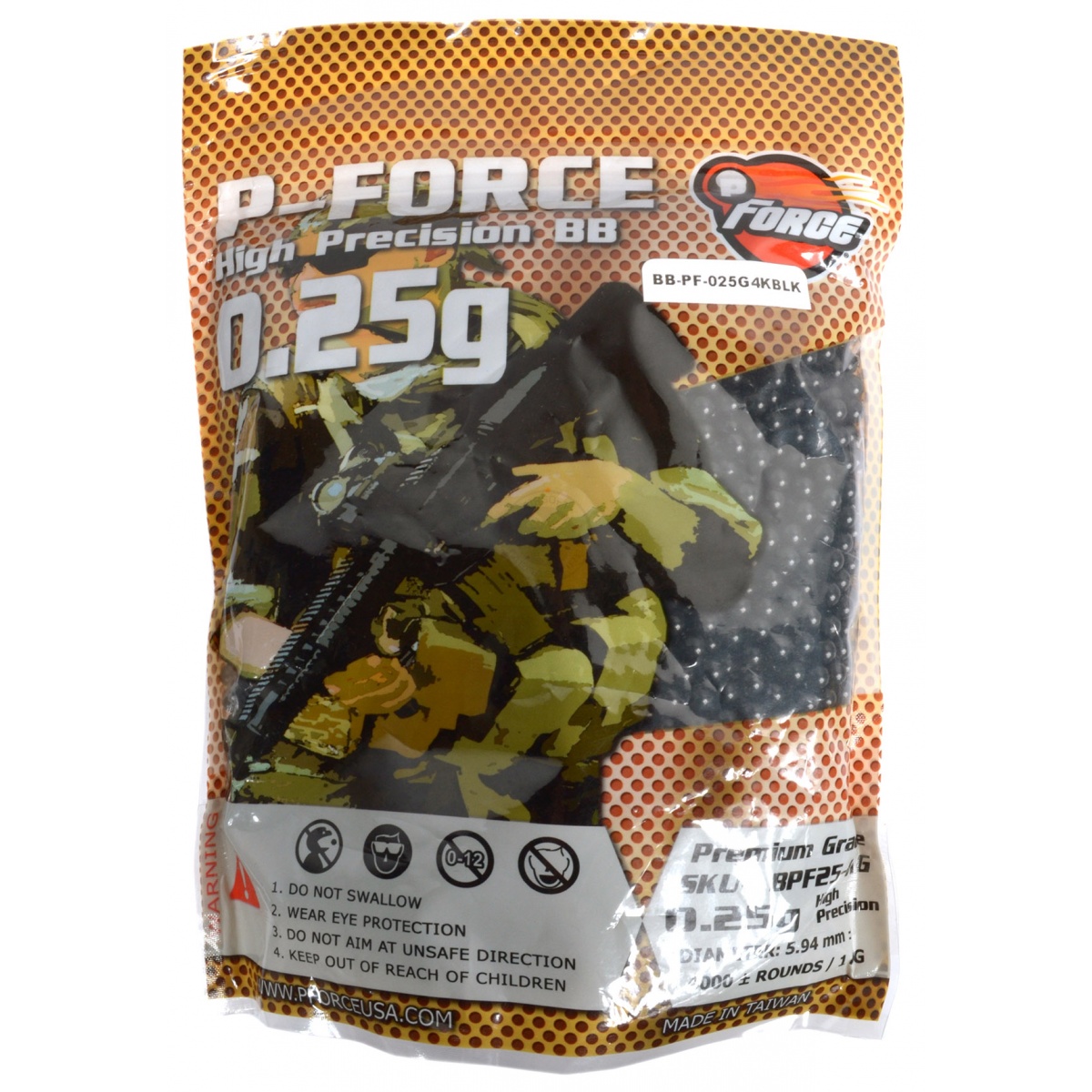 The P-Force 0.25g ultra seamless competition grade airsoft 6mm BBs sport a 30% improvement (on average) in BB spherical consistency and density in comparison to other 0.25g BBs on the market. And because Airsoft Megastore imports in large volumes, you, the consumer get to take full advantage: JDM-spec UltraSlicks made to the highest standards at a fraction of what they should sell for. Eliminate barrel jam and increase POWER with these BBs - Made in Taiwan. 4,000 rounds come in a sealed bag.