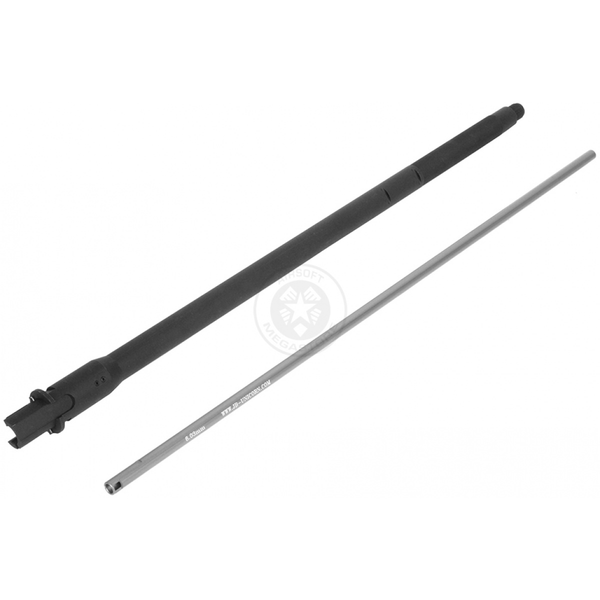 This outer barrel set is constructed out of highly durable steel, ensuring long lasting durability. This set comes with an M16 length outer barrel and 509mm tight bore inner barrel that measures 6.03mm in internal diameter, providing maximum accuracy and increased FPS. Because these barrels are precision crafted, only high quality, precision grade BBs should be used with this inner barrel. Professional installation is recommended for anyone unfamiliar with installing a new inner barrel. The performance finish strengthens and protects the included inner barrel, while reducing friction (conserves velocity & back spin). This simple upgrade set will result in improved accuracy and is perfect for M16 AEGs or replacing old multi-piece outer barrels.