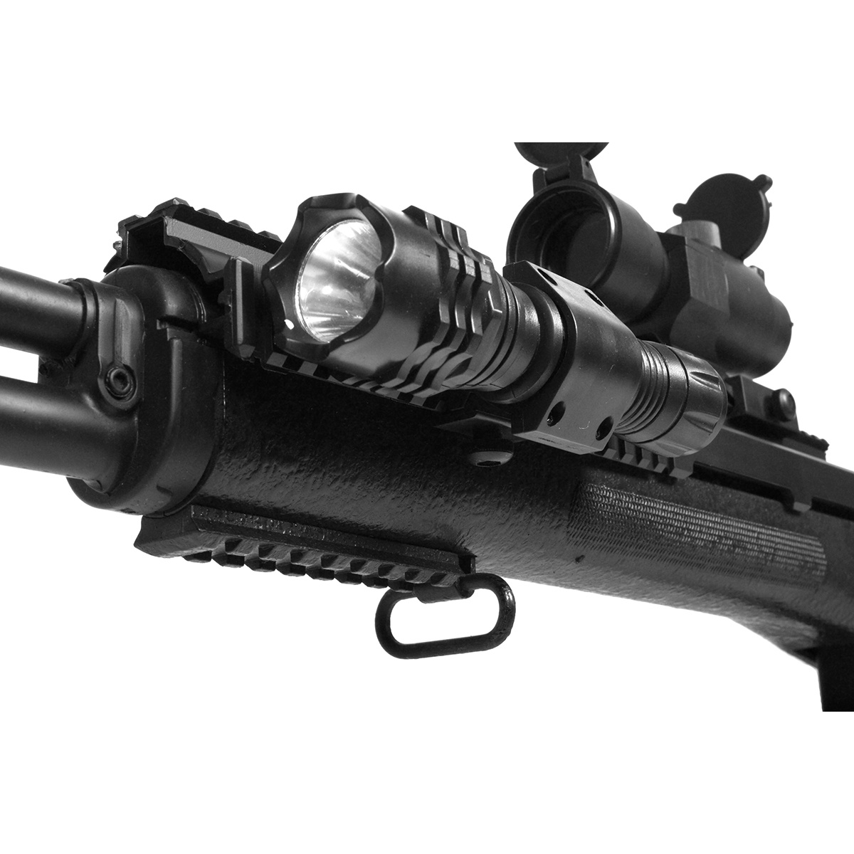 TSD’s NEW line of M14 RIS airsoft sniper rifles offers high power and accuracy for an unbeatable price! This M116 series rifle is much shorter than a standard M14 style rifle and nears the length of the M14 EBR. It comes equipped with a battery operated red dot scope and tactical flashlight and features an integrated rail system (RIS), allowing you attach aftermarket scopes and sights. An integrated bottom accessory rail also makes it easy to attach additional features such as a tactical foregrip, flashlight or laser unit. If you want to maintain a more streamlined look, airsoft players can easily remove the tri-rail system and expose an original M14 style handguard, with textured grip. The front and rear iron sights are also adjustable for windage. Shooting up to 340 feet per second (using 0.20g BBs), this spring action sniper rifle comes with a long precision inner barrel and full metal outer barrel for increased durability. The TSD M14 RIS also sports a sniper rifle grade spring already pre-installed from the manufacturer, guaranteeing power. If you’re looking to get your hands on a sniper rifle with an integrated rail system and everything you need to field right out of the box (including a tactical sling, bag of BBs and speedloader) all for an unbeatable price, then the NEW TSD M14 RIS Sniper Rifle is perfect for you!