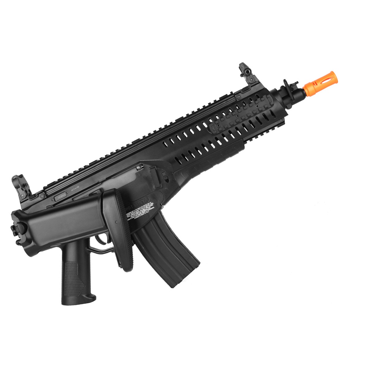 If you’re looking for an authentic replica with an affordable price-point, you can’t go wrong with Elite Force’s Competition series of the ARX160 AEG. Ambidextrous features include the front and rear sling mounts, fire selector switch, and functional bolt release below the trigger guard. To lessen the load and reduce player fatigue, this modern assault rifle has a lightweight ABS polymer receiver. A unique feature that sets this AEG apart from other airsoft guns is its QD outer barrel, which easily detaches to expose the outer barrel, inner barrel and hop-up in seconds. The retractable stock, which also folds when you want to switch into CQB, lets you adjust it for your size. But most of all, the ARX160 AEG accepts most M4 magazines! Just like the Elite level airsoft ARX160, this one comes with a quick-change spring system lets you drop down muzzle velocity without taking the gun apart. Branded with Beretta’s official trademarks and unique serial numbering, the Elite Force ARX160 Airsoft AEG is the most realistic Beretta replica on the market for an affordable price.