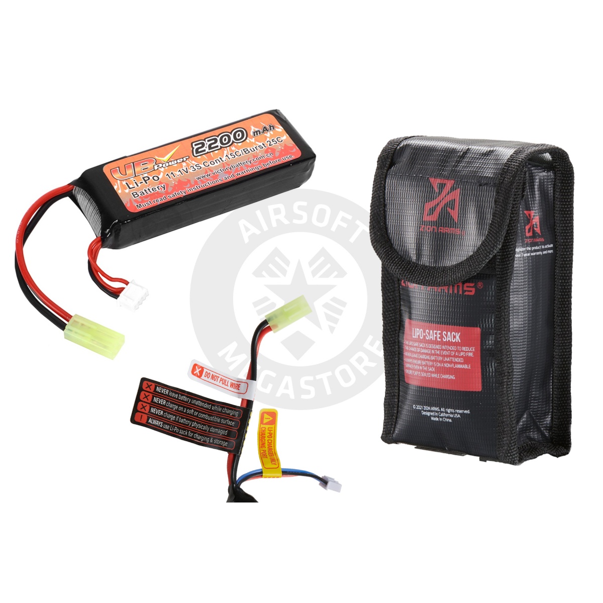 Lithium Polymer Battery Disclaimer: Airsoft Megastore is not responsible for 11.1v LiPO battery usage in airsoft guns that are not ready to handle these high-powered, advanced battery packs. The buyer must make sure that his or her airsoft gun is FULLY ready to handle 11.1v Lithium Polymer batteries as a power source before plugging in the battery to his or her airsoft gun.