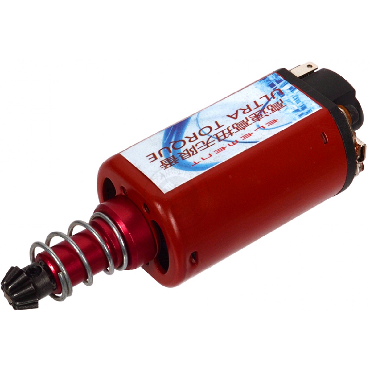 Element's NEW Ultra Torque Long Type Motor is specifically designed to provide your full metal Version 2 gearbox with the power needed to pull back high tension springs, which is perfect for high powered DMR gearboxes. This high quality and high torque motor can pull up to an M190 spring, allowing you to increase the muzzle velocity of your AEG without worrying about gears stripping or your gearbox locking up. High muzzle velocities are sought after by most airsoft players looking to build a long range DMR (Designated Marksman Rifle) AEG, allowing pick off the enemy at greater distances!