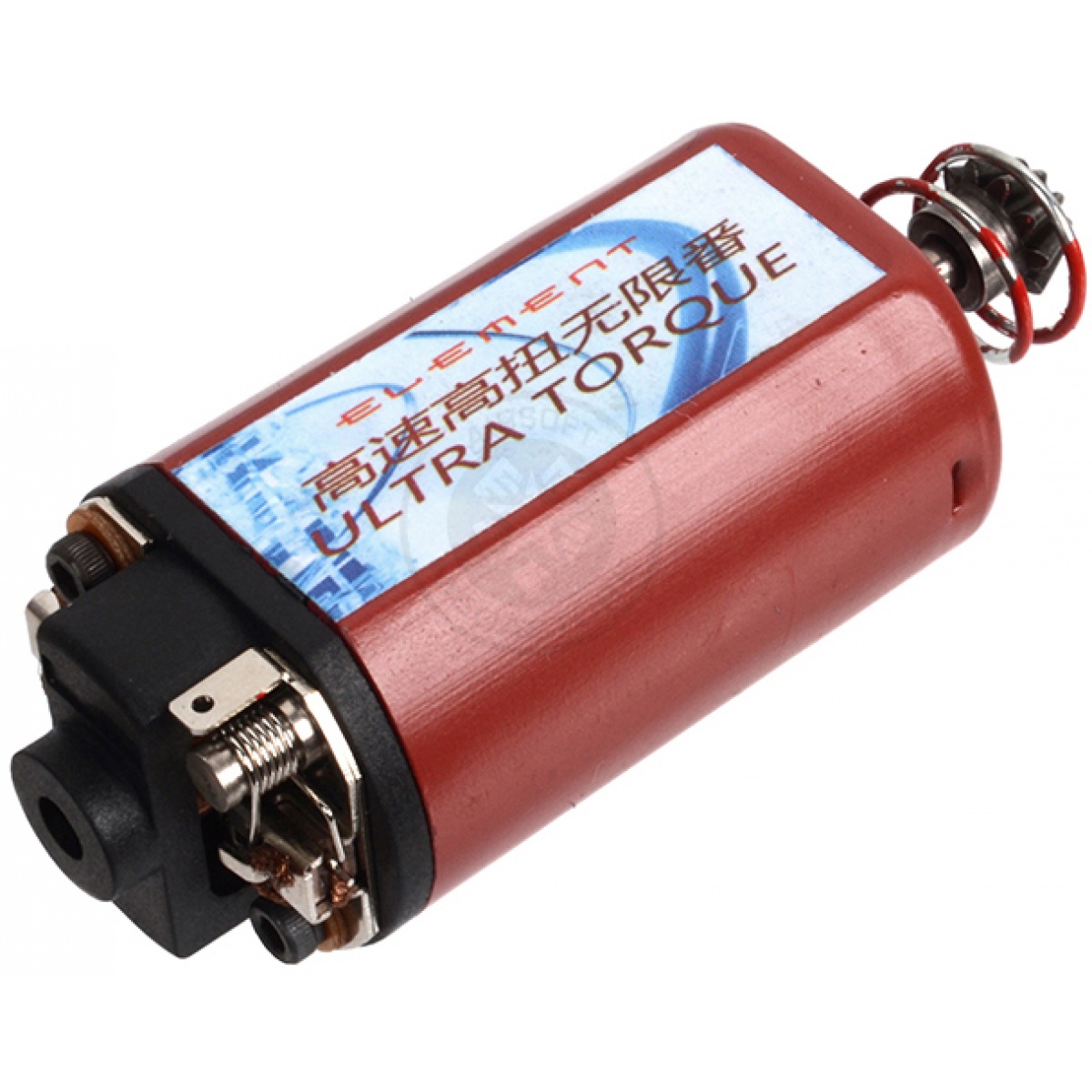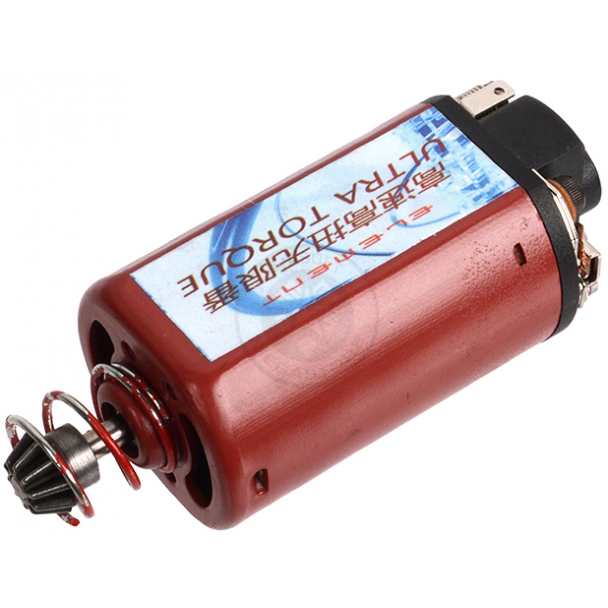 Element's NEW Ultra Torque Short Type Motor is specifically designed to provide your full metal Version 3 gearbox with the power needed to pull back high tension springs, which is perfect for high powered DMR gearboxes. This high quality and high torque motor can pull up to an M190 spring, allowing you to increase the muzzle velocity of your AEG without worrying about gears stripping or your gearbox locking up. High muzzle velocities are sought after by most airsoft players looking to build a long range DMR (Designated Marksman Rifle) AEG, allowing pick off the enemy at greater distances!