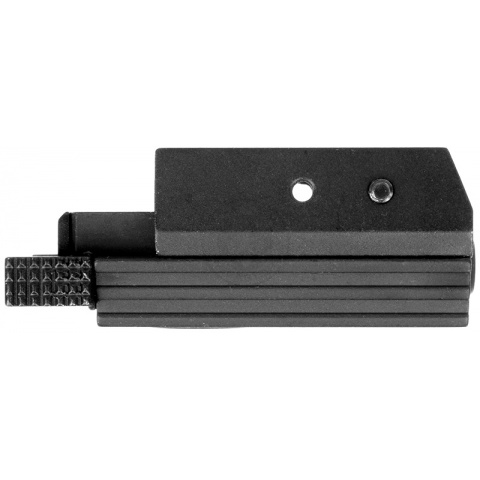 This NEW Low Profile Tactical Red Laser by NcStar is extremely slim and fits seamlessly onto airsoft pistols equipped with a Picatinny accessory rail. The pistol laser, which includes two bolt locations for increased flexibility, is visible up to 150 yards. The rugged aluminum body features an on/off slide switch, located toward the rear of laser, making it easier to turn on with just your trigger finger! The elevation and windage is also adjustable on the laser sight. This tactical laser unit simply mounts onto 20-millimeter Weaver rails for universal compatibility and includes all of the tools needed to secure the unit to your rail. Measuring approximately two inches long, this NcStar Low Profile Tactical Red Laser includes the laser sight, an Allen wrench and two AG13 button cell batteries. This low-profile laser unit is an extremely effective target acquisition tool that gives you the upper hand in any airsoft battle!