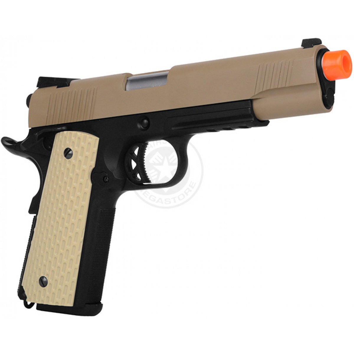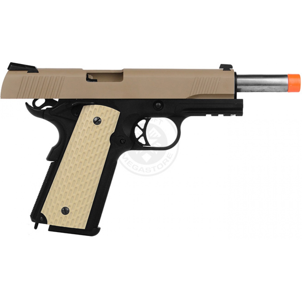 WE Desert Warrior 5.1 M1911 Airsoft Gas Blowback Pistol - TAN / BLACK