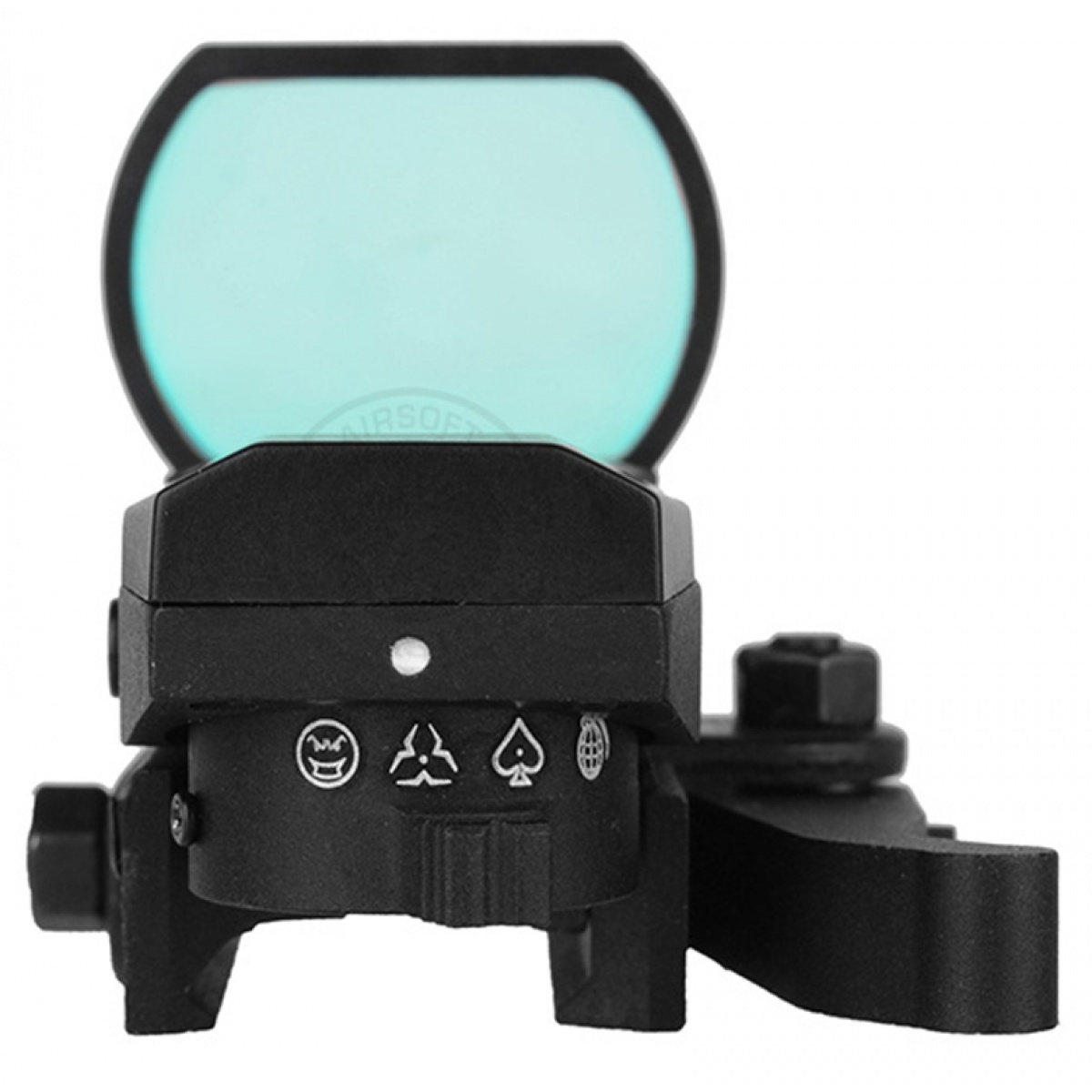 The NcStar Red Rogue Panorama Sight features four different aiming reticles. Each reticle — grenade, spade, VISM and evil face — is designed for quick target acquisition at multiple ranges. Unlike other similar sights from other brands, the Red Rogue sight has seven levels of brightness, suitable for any lighting environment. Constructed entirely out of anodized aluminum, this sight provides added durability. It also offers a wide field of view. This sight is extremely useful as a stand-alone optic due to its compact size. This red dot sight can attach onto all Weaver rail systems, comes with a quick release mount, and has unlimited eye relief for flexible mounting. The unique reticles of the NcStar Red Rogue Sight bring an added level of intensity to any airsoft game!