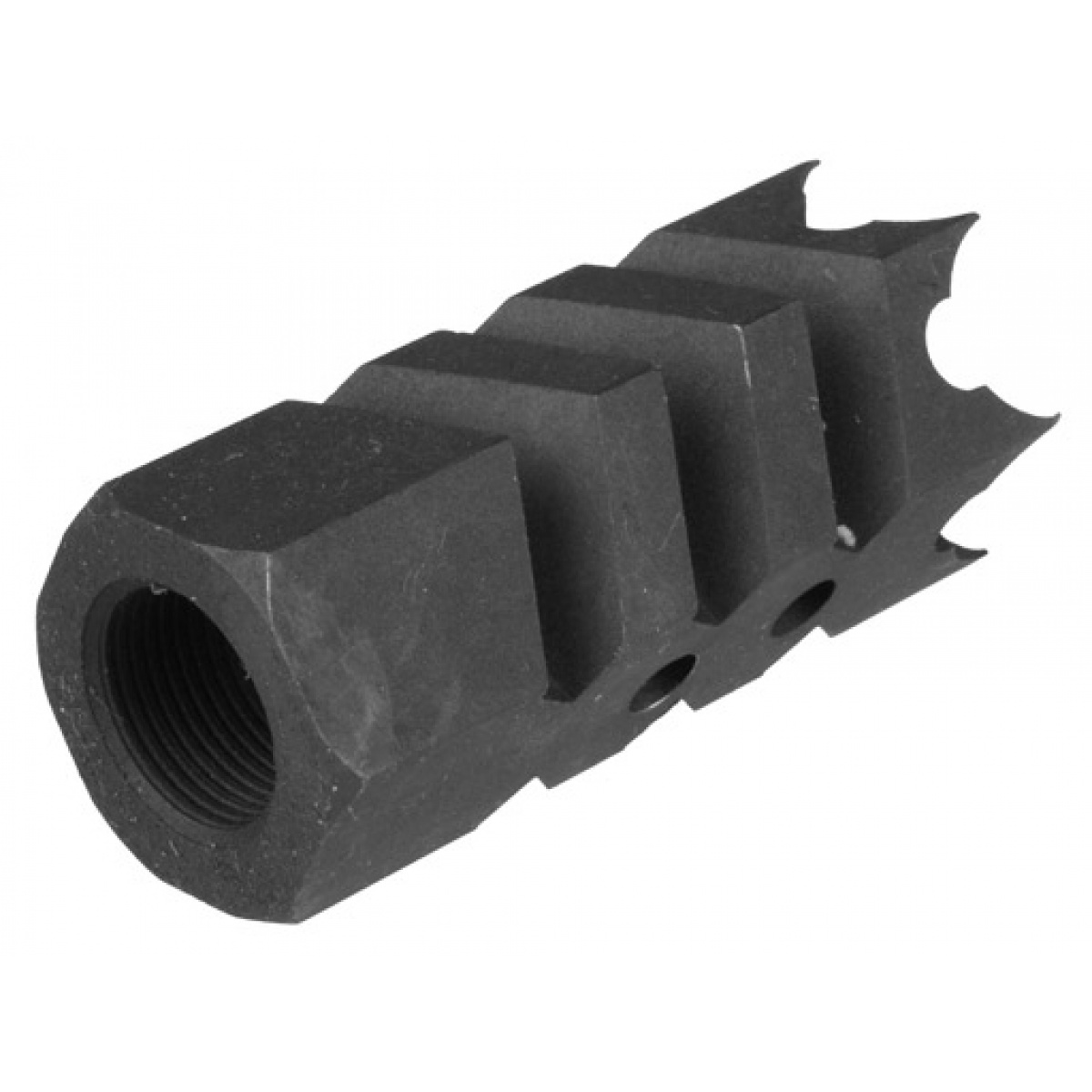 This T&D Airsoft shark-style flash hider is made entirely out of metal for maximum durability. This muzzle device is compatible with airsoft rifles with 14mm counter-clockwise threading.