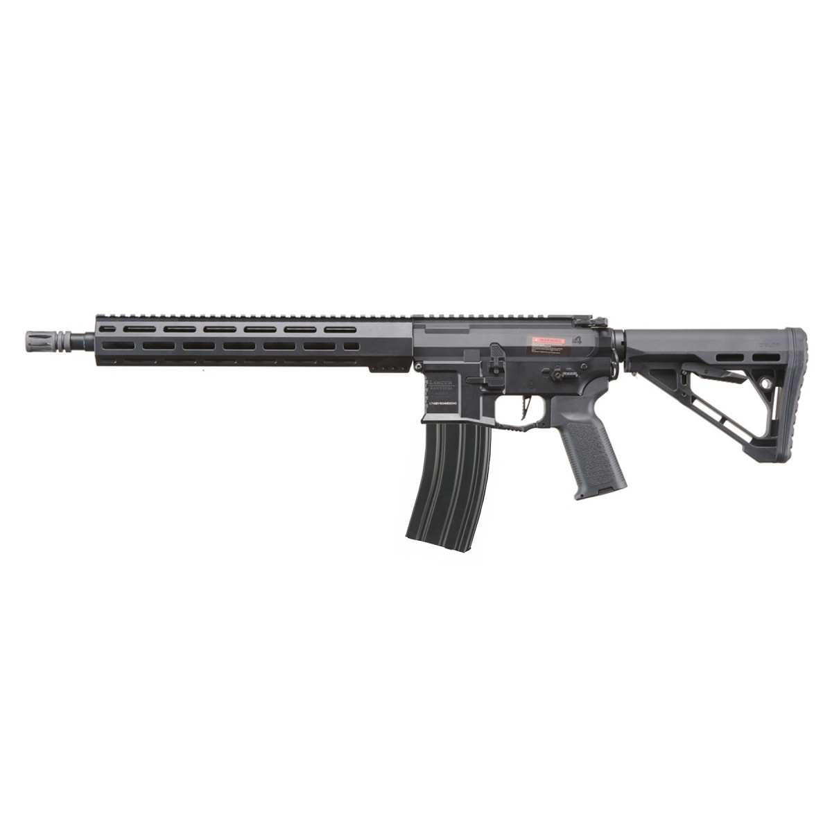 The Lancer Tactical Gen 4 Predator SBR AEG with PTS Rail System and Nebula II ETU in black is a battle-ready rifle designed for advanced performance and tactical customization. Built from high-strength metal alloy, this AEG features a billet-style receiver with a matte black finish for durability and sleek aesthetics. Its standout feature is the fully licensed Griffin Armament handguard, offering seven sides of M-LOK compatibility and a full-length 1913 Picatinny top rail. Designed to accept silencers up to 1.5 inches in diameter, this platform gives you serious flexibility for mounting optics, foregrips, lights, and suppressors. The rifle is equipped with a 6.03mm tight bore inner barrel, rotary hop-up chamber, and upgraded low-profile PTS gas block and gas tube, ensuring consistent accuracy and range on the field. Internally, the Gen 4 Predator is powered by Lancer Tactical's Nebula 2 ETU, a programmable MOSFET system that delivers responsive trigger performance, protection, and firing mode options. Clocking in at 380-400 FPS, the 290mm inner barrel makes it ideal for close quarters and medium-range engagements. The rifle also includes ambidextrous fire controls, charging handle, and a functioning bolt catch for a realistic feel. The Delta stock with a rubberized buttpad enhances comfort and stability, while the quick-change spring system and Deans connector make maintenance and upgrades hassle-free. Rounding out the build are flip-up Faxon iron sights and a 140-round high-speed mid-cap magazine. Whether you're looking to dominate on the airsoft field or upgrade your kit with cutting-edge components, the Lancer Tactical Gen 4 Predator 10" SBR is a high-performance choice built to keep up with aggressive playstyles. Available now and ready for action.