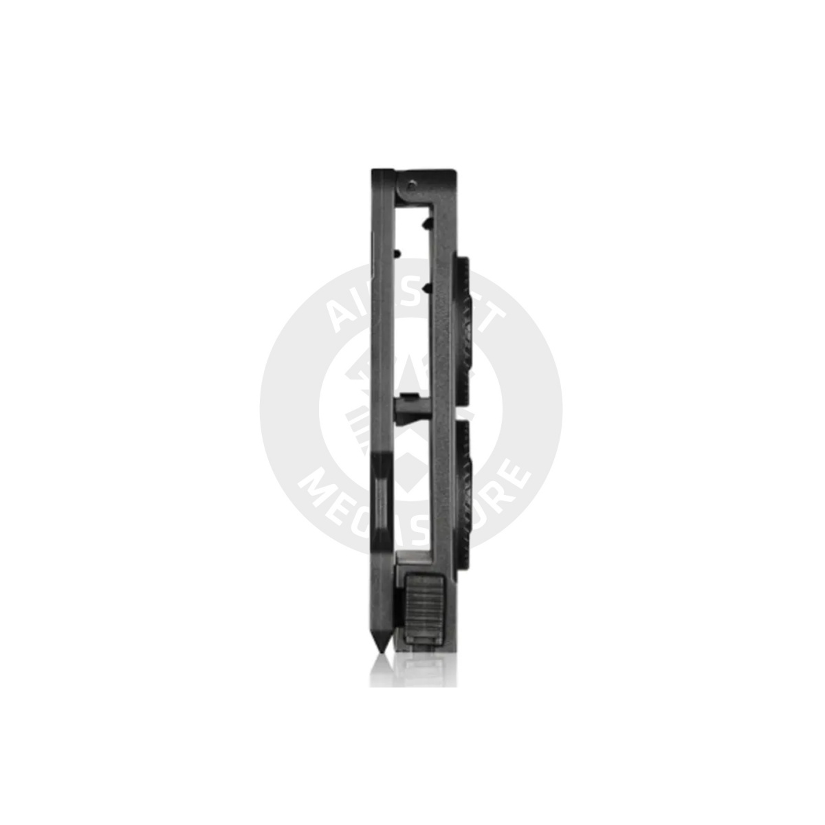 The Amomax Molle and Belt Clip For Holsters in Black is a versatile accessory designed for airsoft enthusiasts seeking flexibility and reliability. Compatible with 1.5″ to 2.5″ belts, this clip features an easy width adjustment system using an adjustment lever and marked slots. Its innovative two-tooth gear allows for customizable ride height, and the secure locking mechanism ensures a firm hold on your belt. By removing the adjustment lever, the clip can seamlessly transition into a MOLLE attachment, compatible with both laser-cut and classic strap-type MOLLE systems. Enhance your tactical setup with this durable and adaptable holster clip from Amomax.