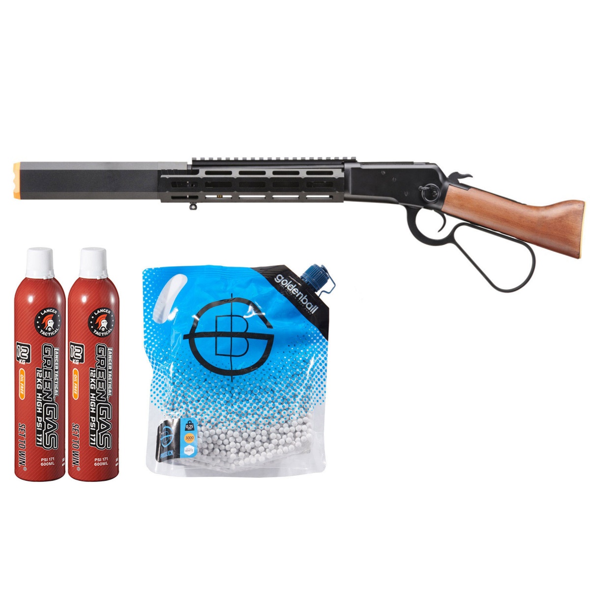 Atlas Custom Works M1873 "Mares Leg" Lever Action Airsoft Green Gas Rifle W/ M-LOK Rail And Suppressor - Green Gas Combo - (Black)