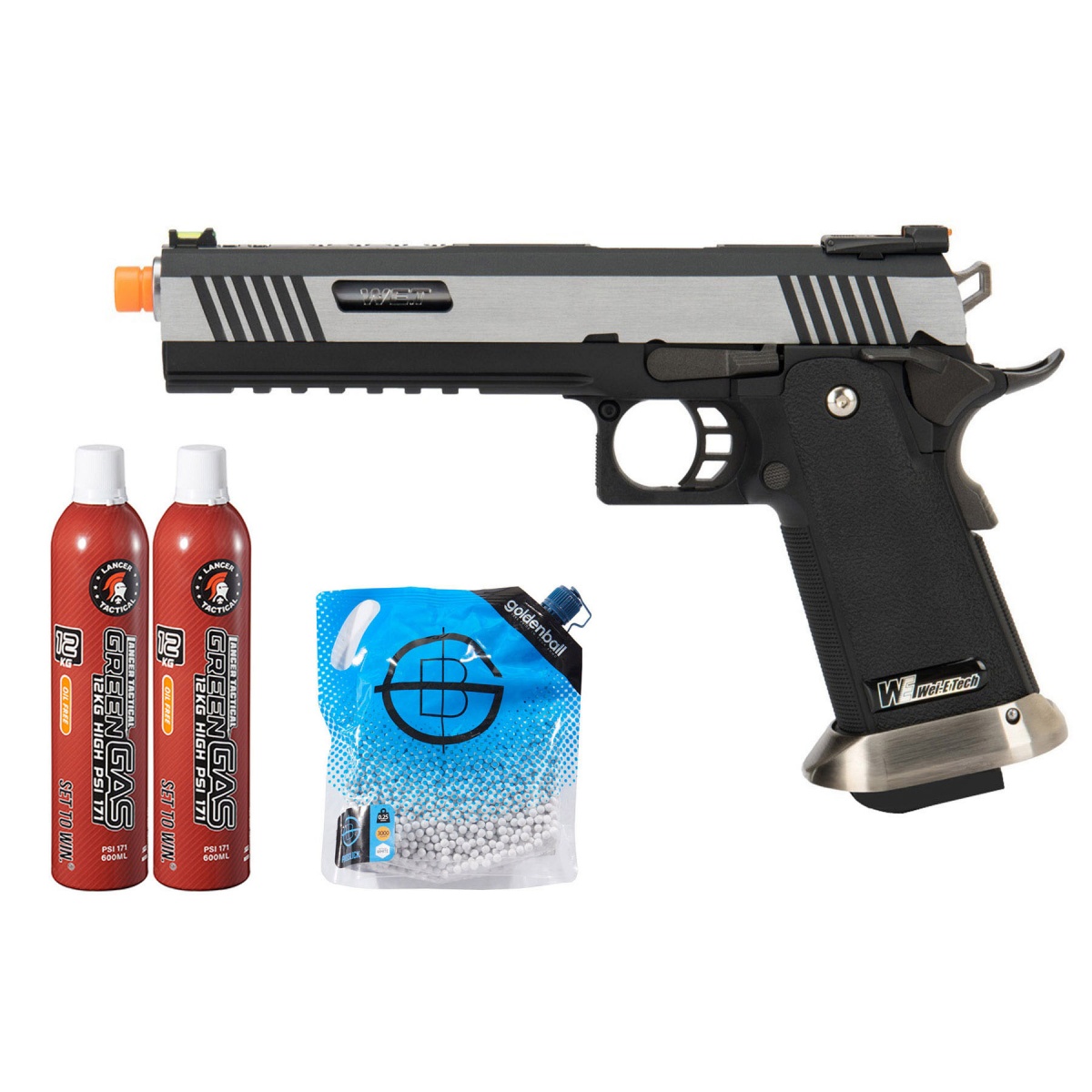 This exclusive green gas combo bundle adds unmatched value by including Golden Ball 3000 Round 0.25g ProSlick Seamless BBs and Lancer Tactical 12KG High PSI Green Gas. The precision polished BBs ensure smooth feeding, top accuracy, and consistent performance across all 6mm airsoft guns, while the high quality green gas powers the pistol while simultaneously protecting its internals for long lasting use. For airsoft dealers, this package is a high value sales opportunity that combines a sought after competition pistol with essential consumables that players buy repeatedly. By promoting this ready to play bundle, dealers can highlight exclusive discounts, bundled deals, and huge savings for customers compared to buying items separately. Offering both premium performance and cost efficiency, this package is the perfect way to boost airsoft product sales and attract enthusiasts seeking a complete high performance setup right out of the box.