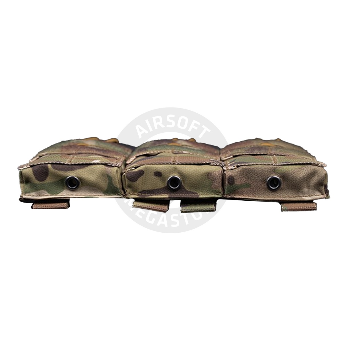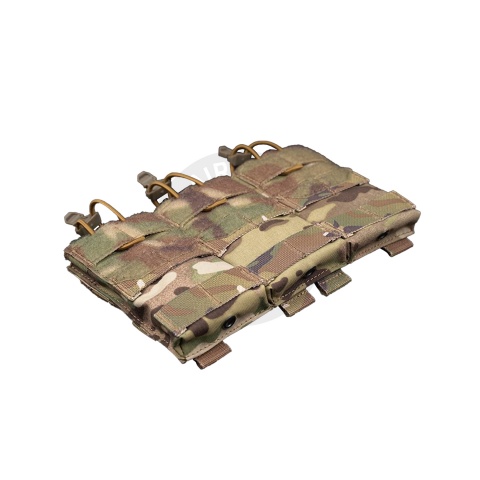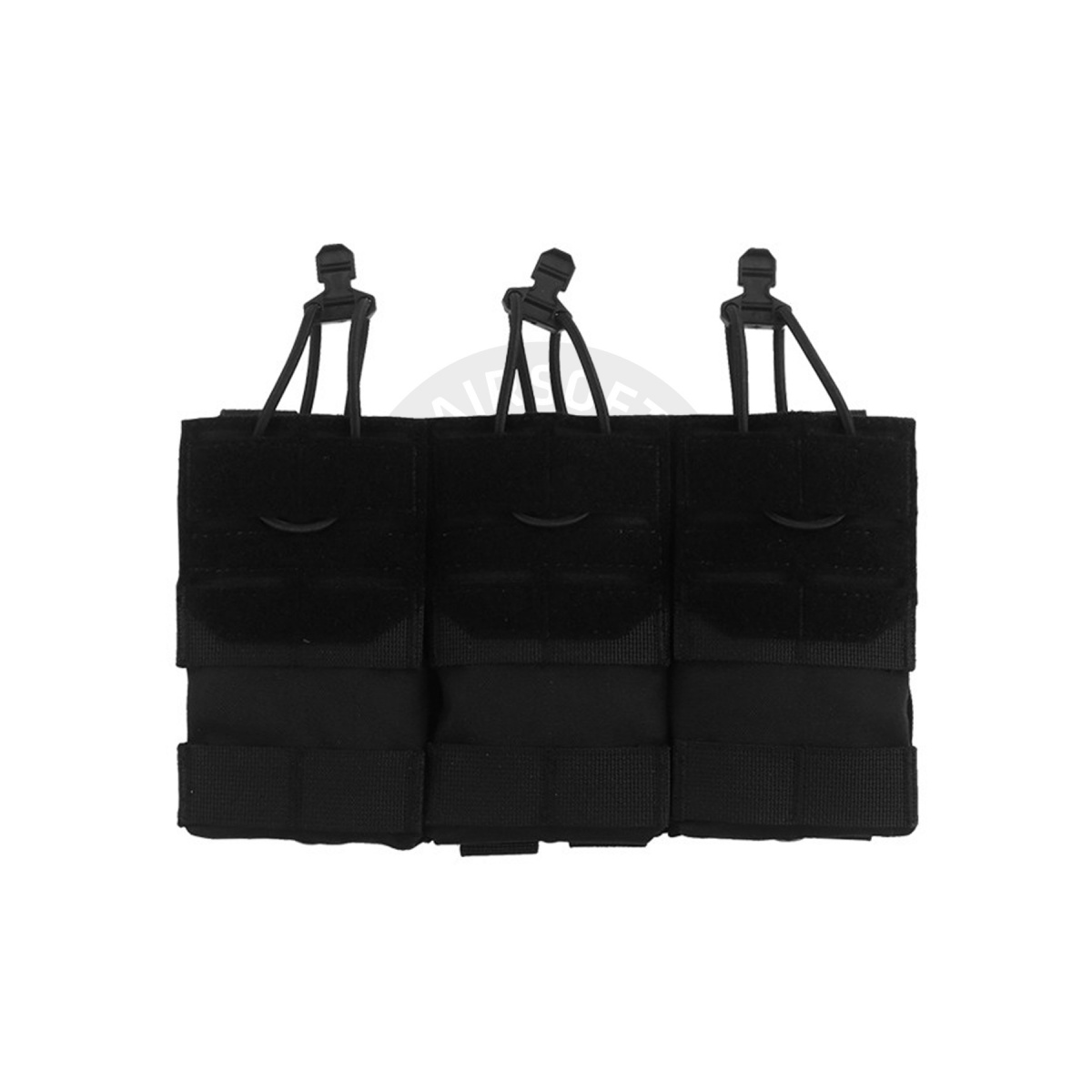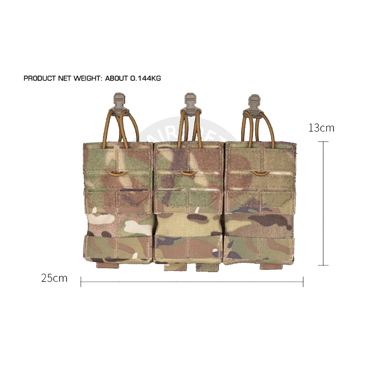 The Code 11 Gear Dual Purpose 5.56 Triple Magazine Pouch in black is built for shooters who want dependable gear that performs under pressure. Constructed from heavy-duty Cordura fabric, this triple mag pouch offers rugged durability while staying lightweight and low profile. Sized at 25 x 19 x 3.5 cm, it securely holds three standard 5.56 magazines for fast reloads during airsoft matches, range sessions, or tactical training. The pouch features a drainage hole at the bottom to prevent water buildup and protect your magazines in wet conditions. Elastic retention cordage with easy-grip pull handles allows smooth access even when wearing gloves, and reinforced stitching keeps the pouch stable on plate carriers, chest rigs, or belts. Note that magazines are not included. Functionality and field-ready design make this pouch a smart upgrade to any loadout. The minimalist black finish blends with most tactical setups while providing the discreet look many players prefer. The compact footprint and triple capacity maximize ammo ready at your chest without adding unnecessary bulk. Whether you search for 5.56 magazine pouches, tactical mag holder, or Cordura triple mag pouch, this Code 11 Gear product gives you quick access, solid retention, and long-lasting construction. Available now, it is an ideal choice for airsoft players, law enforcement trainees, and anyone who needs reliable magazine storage that stands up to frequent use.