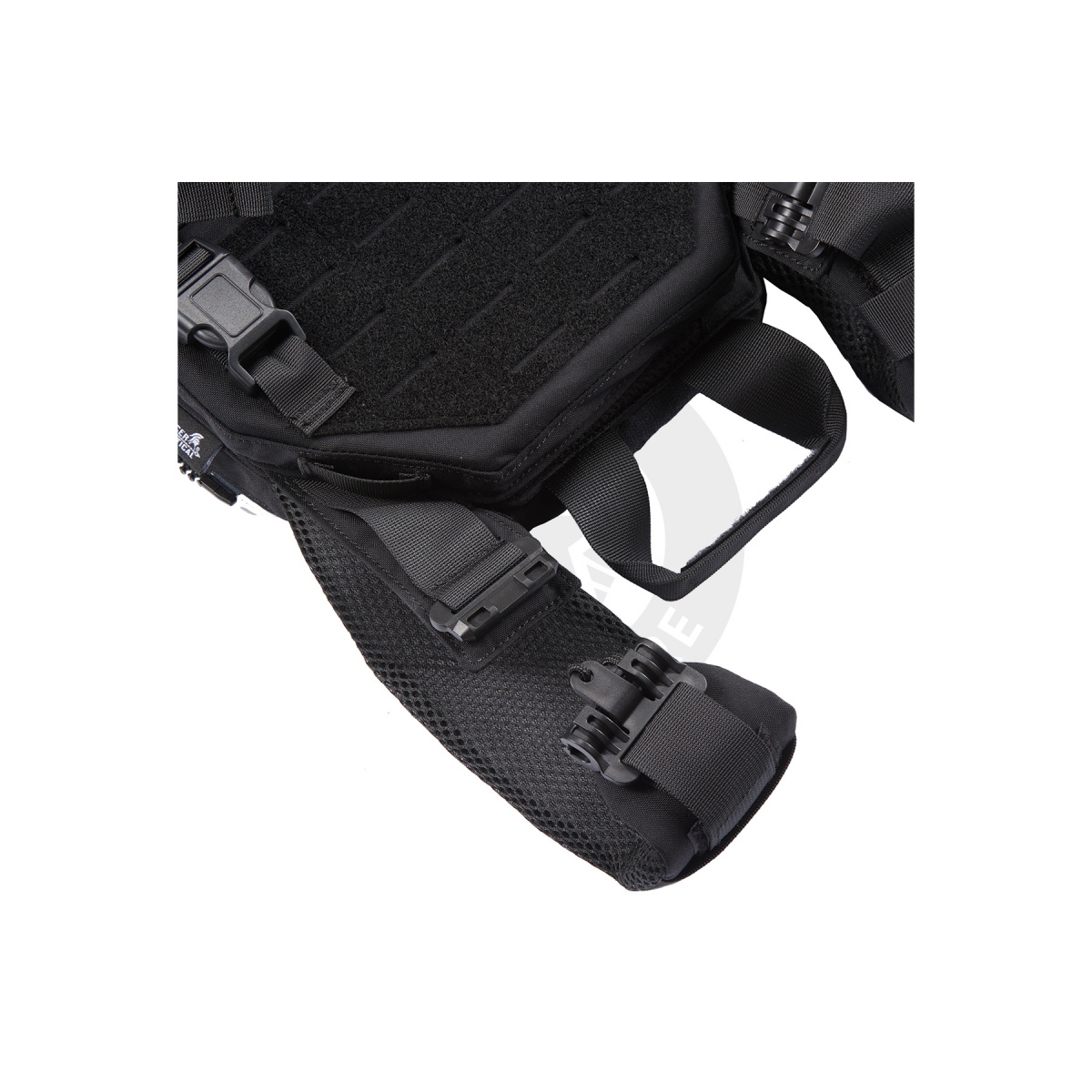 The Lancer Tactical 2018 Front/Back Pro Plate Carrier is a high-performance tactical vest designed for airsoft enthusiasts seeking durability, comfort, and flexibility. Constructed from durable nylon, this plate carrier features adjustable shoulder padding with QD connectors for easy customization. Its front-mounted laser-cut molle arrays allow for seamless expansion with additional gear or bags, while the side pistol and front rifle magazine pouches offer secure retention. A full reinforced molle array on the rear and zippered panel provide the option to add external accessories. With cord and wire-guided loops, quick disconnect buckles, and a drag handle, this plate carrier delivers both functionality and style. Perfect for tactical play or load-bearing needs, this plate carrier ensures top-notch performance.