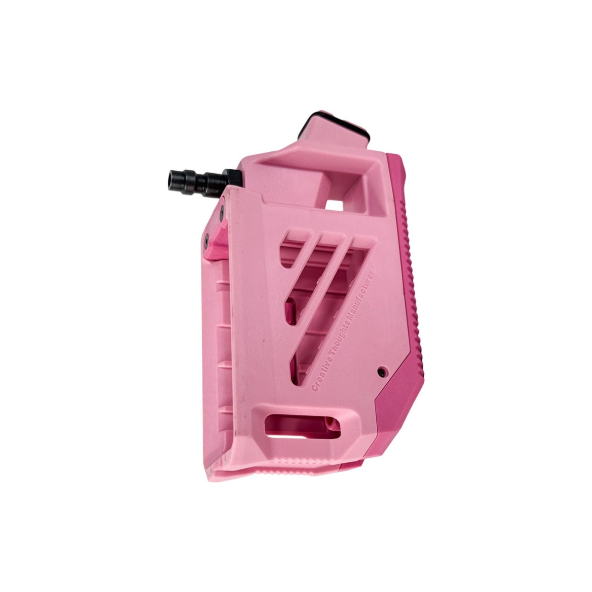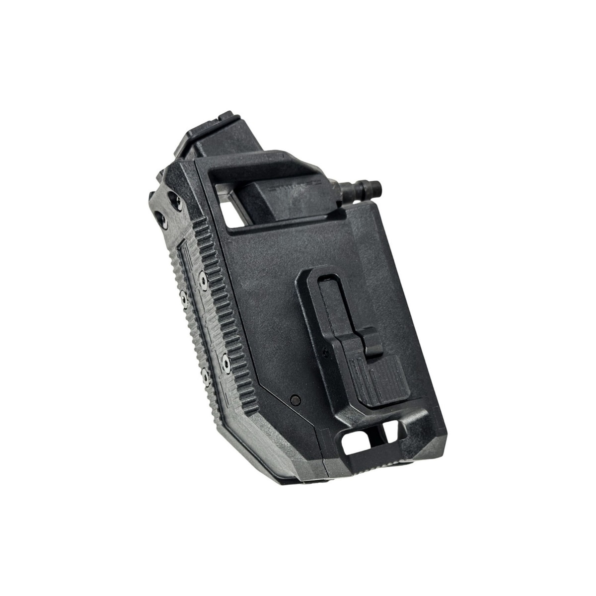 The CTM TAC AAP-01 / Glock HPA M4 Magazine Angled Adapter for GBB pistols is built for players pushing the limits of performance, efficiency, and speed on the field. Designed to convert your gas blowback pistol into an HPA-powered platform, this adapter allows seamless use of M4 AEG magazines, unlocking higher capacity and consistent air delivery for demanding gameplay. Its aggressive angled profile improves ergonomics, enabling more natural shooting positions and faster target acquisition in competitive environments. Constructed from injection molded glass reinforced nylon, the adapter delivers a lightweight yet highly durable structure, while the integrated steel valve ensures reliable operation under sustained HPA pressure. An internal BB retention system prevents spillage during magazine changes, keeping reloads clean and efficient during high tempo matches.