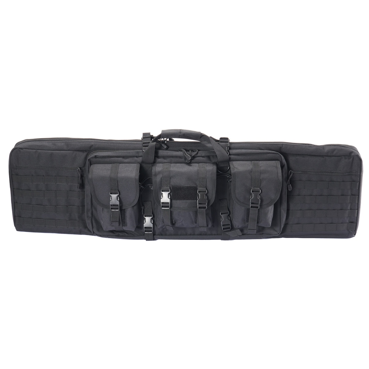 The Guawin 46 Inch Double Gun Bag is the ultimate solution for securely transporting and protecting your airsoft, hunting, or tactical rifles. Constructed from durable nylon fabric, this bag is built to withstand the rigors of frequent use while maintaining a lightweight and manageable design. Its spacious main compartment is capable of holding two full-size rifles up to 44 inches in length, kept safe and secure with an EVA foam brace that provides structural support and an EVA foam divider for added padding between firearms. Double velcro straps inside ensure your guns remain firmly in place during transport. The bag also features a secondary compartment that accommodates rifles or shotguns up to 34 inches, giving you the flexibility to carry multiple firearms or additional training equipment. Top and bottom buckle straps on each side keep your gear tightly secured, while the removable backpack straps with D-ring attachment points offer versatile carrying options for comfort and convenience. In addition to its superior storage capacity, the Guawin 46 Inch Double Gun Bag is designed for maximum utility in the field. The exterior includes three front accessory pouches with bungee fastener cords for quick access to magazines, tools, or other essentials, along with velcro panels for patches to personalize your loadout. Four lines of MOLLE webbing on each side allow for the attachment of extra pouches or gear, making this bag fully customizable to your mission requirements. Whether you are heading to the range, preparing for a skirmish, or traveling with your rifles, this double gun bag offers unmatched protection, organization, and style. Its rugged construction, tactical features, and ample storage make it a must-have for any serious airsoft player, marksman, or outdoor enthusiast looking for a professional-grade rifle transport solution.