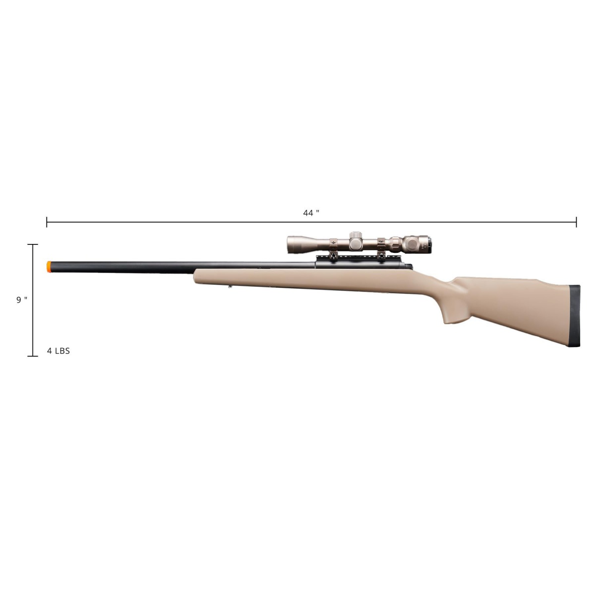 Golden Ball Bolt Action Spring Powered Sniper Rifle w/ Metal Scope - (Tan)
