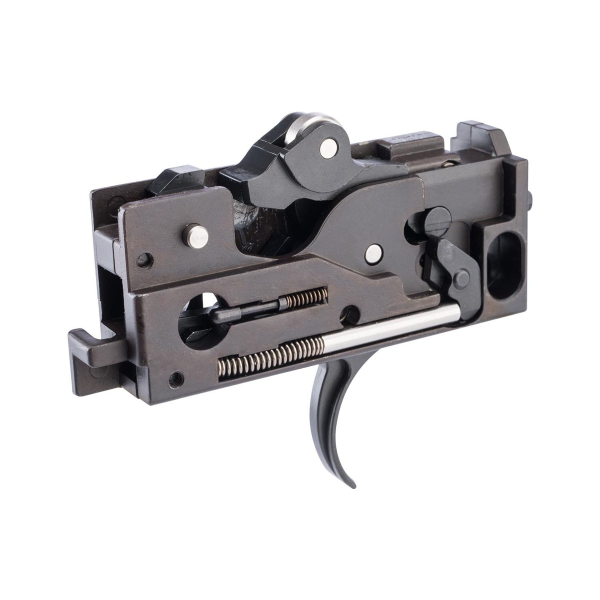 Engineered for drop in installation the Guns Modify EVO Complete Steel Trigger Box comes fully assembled with a trigger pin and rear screw for secure fitment making it an easy yet powerful upgrade. Weighing 270 grams this all steel housing delivers the durability and reinforcement needed for competitive gameplay or tactical training environments. Its precision design ensures perfect compatibility with the Tokyo Marui M4 and M16 MWS gas blowback system guaranteeing seamless integration with factory and aftermarket parts. For players seeking a refined trigger feel greater reliability and unmatched consistency this EVO trigger box represents the peak of Guns Modifys engineering. Built for serious airsoft enthusiasts this upgrade transforms the MWS platform into a high performance tool capable of delivering professional level precision and durability on every pull of the trigger.