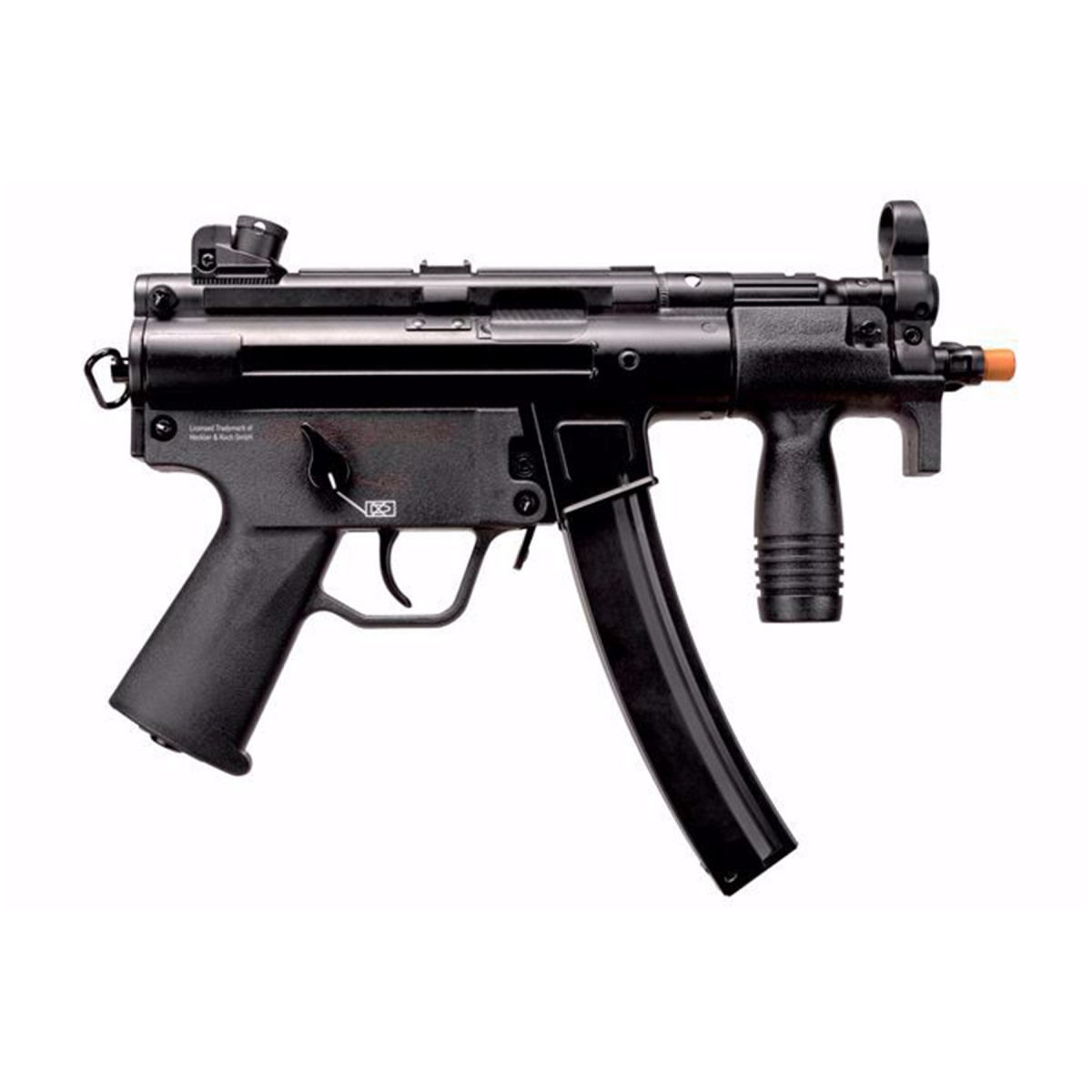 The Elite Force MP5K Eyetrace 6mm AEG Airsoft SMG PDW is a compact powerhouse designed for serious airsoft players who want performance, versatility, and style all in one tight package. Modeled after the iconic Heckler & Koch MP5K, this airsoft submachine gun is built for close-quarters dominance, making it ideal for indoor CQB fields or fast-paced objective-based play. Equipped with Elite Force's built-in EyeTrace tracer unit, this AEG offers enhanced night game performance, lighting up your shots right out of the box. Whether you're operating under the sun or in total darkness, this MP5K delivers 300 FPS with 0.20g BBs, powered by a reliable 9.6V to 11.1V 1200 mAh 20C NiMH battery (sold separately). This compact AEG features semi-auto and full-auto fire modes, letting you adapt to every scenario on the fly. It comes with a standard MP5 high-cap magazine, and an adjustable hop-up to fine-tune your shot trajectory for precision. The 14mm CCW threaded muzzle allows for easy attachment of suppressors or alternate tracer units, while adjustable iron sights and a forward vertical grip improve target acquisition and handling under pressure. With authentic licensed branding from Heckler & Koch and a sleek matte black finish, this AEG delivers on both performance and aesthetics. Whether you're playing VIP escort, defending tight corridors, or running quick flank routes, the Elite Force MP5K Eyetrace AEG is a top-tier PCC choice that combines realism with innovative tracer tech for day and night airsoft dominance.