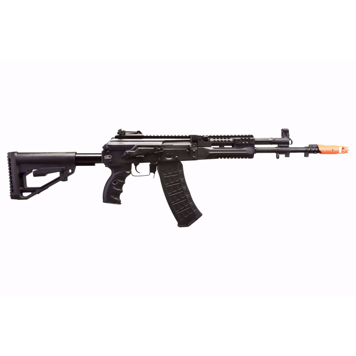 The E&L AK12 Platinum AEG 6mm Airsoft Rifle w PT 2.0 ETU V3 in black is built for players who want modern AK styling with dependable field performance. This Platinum series AEG runs semi auto and full auto and shoots at approximately 382 FPS, making it a strong choice for outdoor skirmishes and mixed environments. A rugged metal frame keeps the build solid, while the retractable polymer stock helps you adjust length of pull for different gear setups and shooting positions. Up front and out back, adjustable front and rear sights make it easy to dial in your sight picture, and the adjustable hop up lets you fine tune BB flight for better range and consistency. Internally, the PT 2.0 ETU V3 enhances trigger response and control, giving this AK12 AEG airsoft rifle the crisp feel players look for when moving between targets.