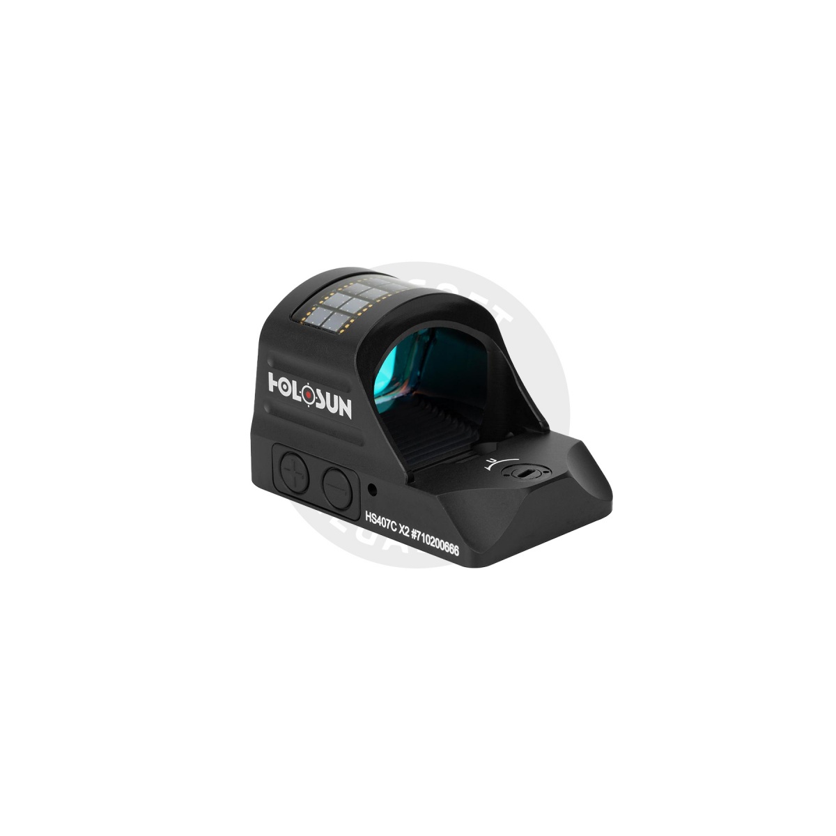 HOLOSUN HS407C X2 Solar + Battery Powered Micro Dot Reflex Sight w/ Red Dot Reticle - (Black)