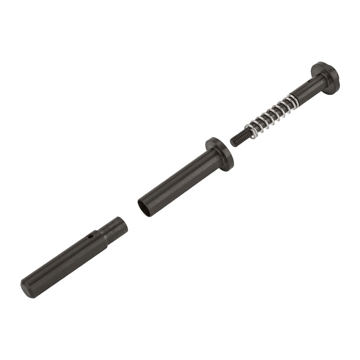 The guide rod is designed to help reduce recoil, bolt carrier speed, wear/ tear on parts, shock and vibration to your optics, improved reliability and suppress bolt bounce by using two springs for recoil versus the traditional single spring. The drop-in buffer features a high density spring that absorbs the shock from the bolt carrier. It produces significant reductions in muzzle climb and recoil and gives users more consistent performance.