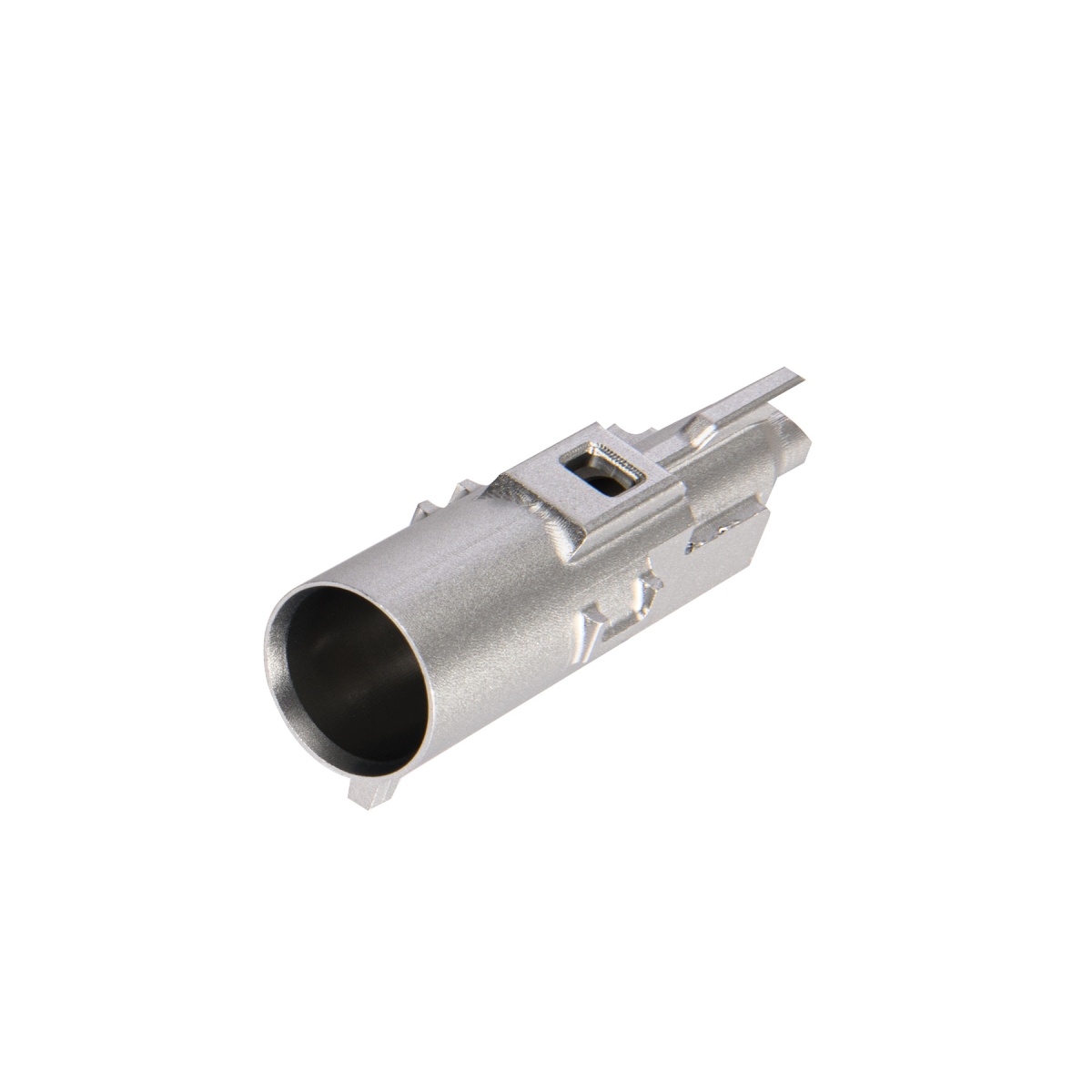 It offers superior durability and consistency over standard polymer nozzles. Its aluminum construction also prevents flexing or warping under heavy usage. The featured enlarged gas inlet to smooth the gas inflow to maintain the cycling and stability.