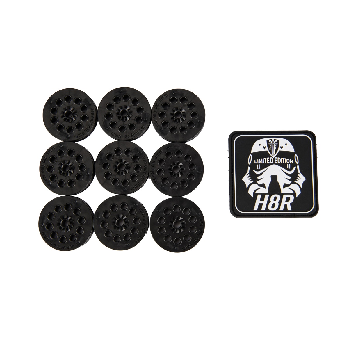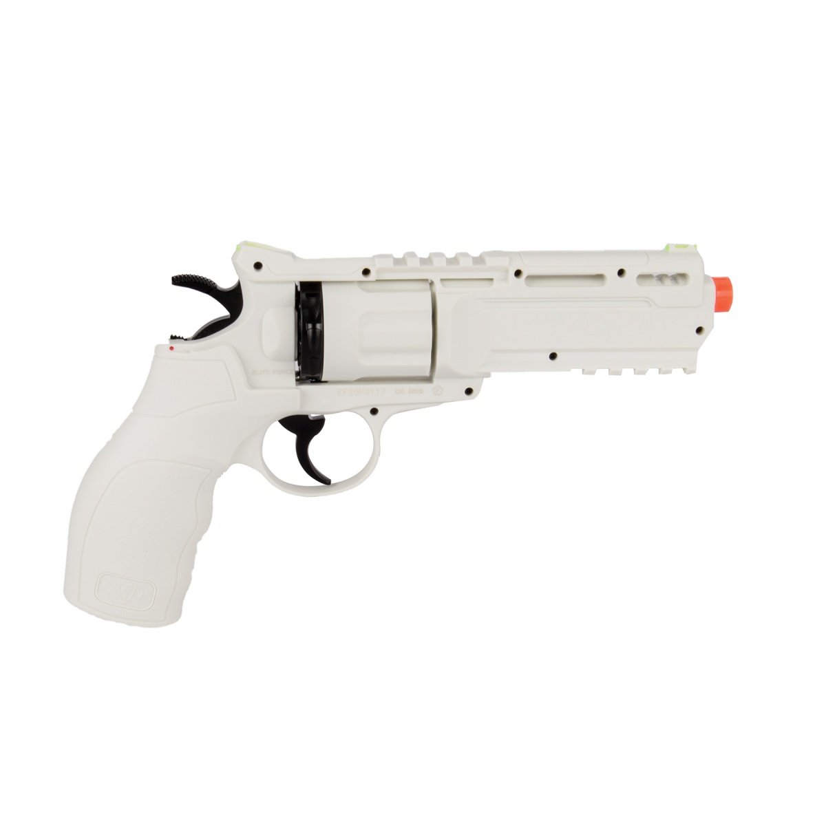 The Elite Force H8R Airsoft gun is no doubt a beast. But despite its large profile and a unique white finish, this pistol only weighs about 1.5 pounds. Offering rail estate for both dot sights and lights/lasers, this airsoft revolver is ready to hit the field as it already comes with nine 10-round magazines! The mag release, located on the left side, easily slides forward and up to unlock the magazine, allowing you to quickly swap out for a new one. Though this CO2 revolver lacks a hop-up system, it's surprisingly accurate. Tested with 0.20g BBs, rounds reach up to 325 FPS and shoot straight 20 to 30 feet before starting to drop. This makes it perfect for close quarters battle. As a nice finishing touch, reloads are made even easier as the break away pistol grip comes with an integrated hex key for piercing the fresh new 12g CO2 cartridge. If you're looking for a reliable CO2 airsoft pistol already equipped with extra mags, the Elite Force H8R airsoft revolver is any easy pick for its price.