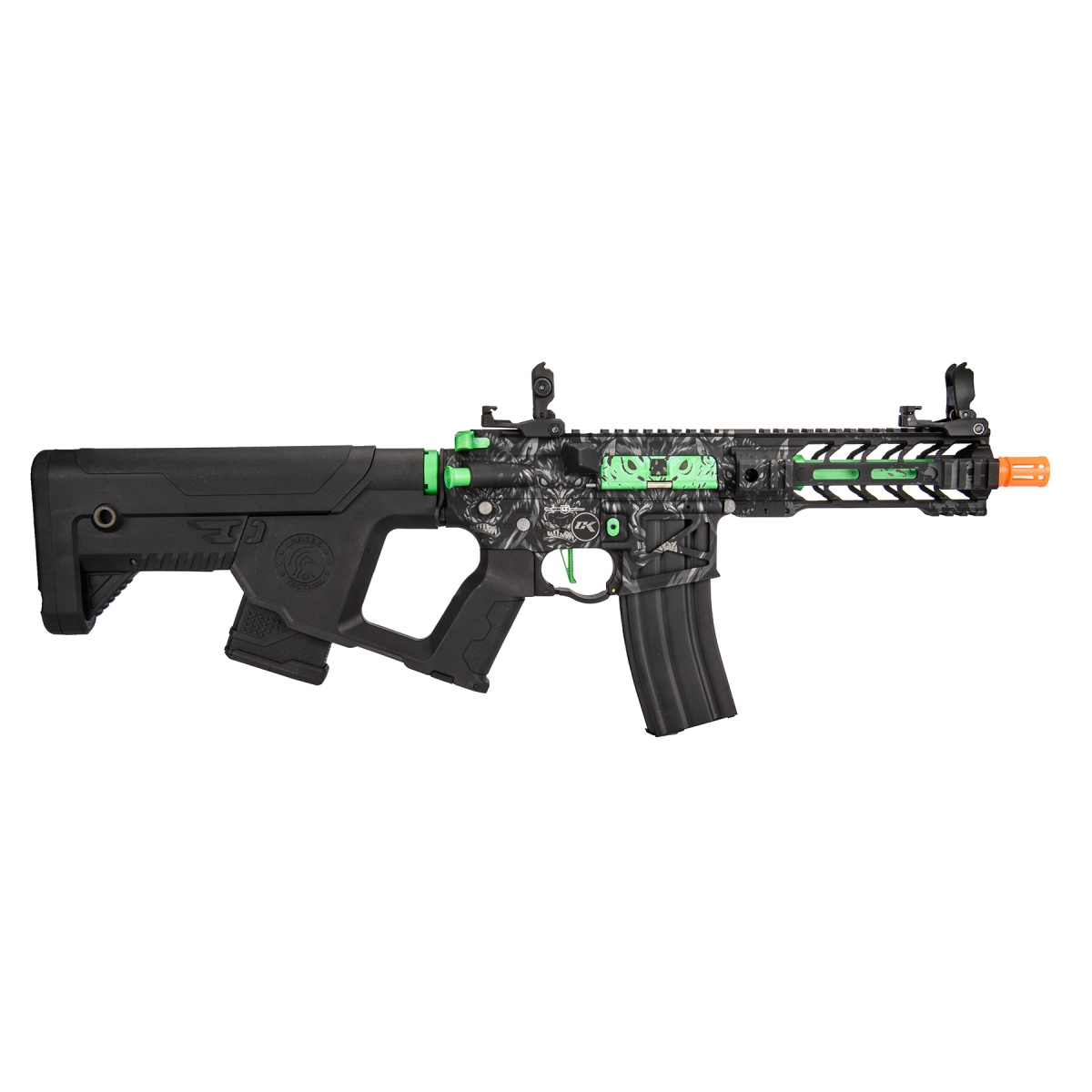 Lancer Tactical Enforcer Battle Hawk 7" Skeleton Airsoft Airsoft AEG [High FPS] w/ Alpha Stock (Black/Green w/ Wolfpack Laser Engraving)