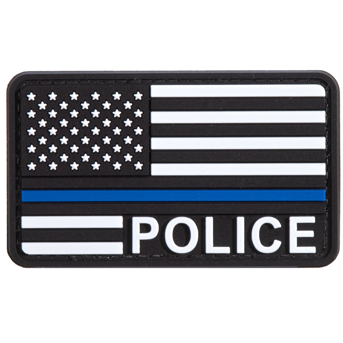 US Flag with Police Blue Line PVC Patch (Color: Black / White / Blue)