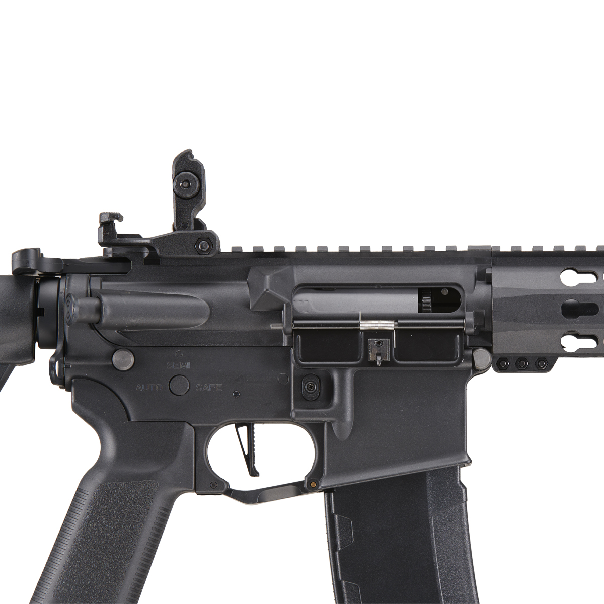• Reinforced metal Gen-2 gearbox, 18:1 steel gear set, steel teeth polycarbonate piston, bearing spring guide, rotary hop-up, 19,000 RPM high torque motor for consistent performance