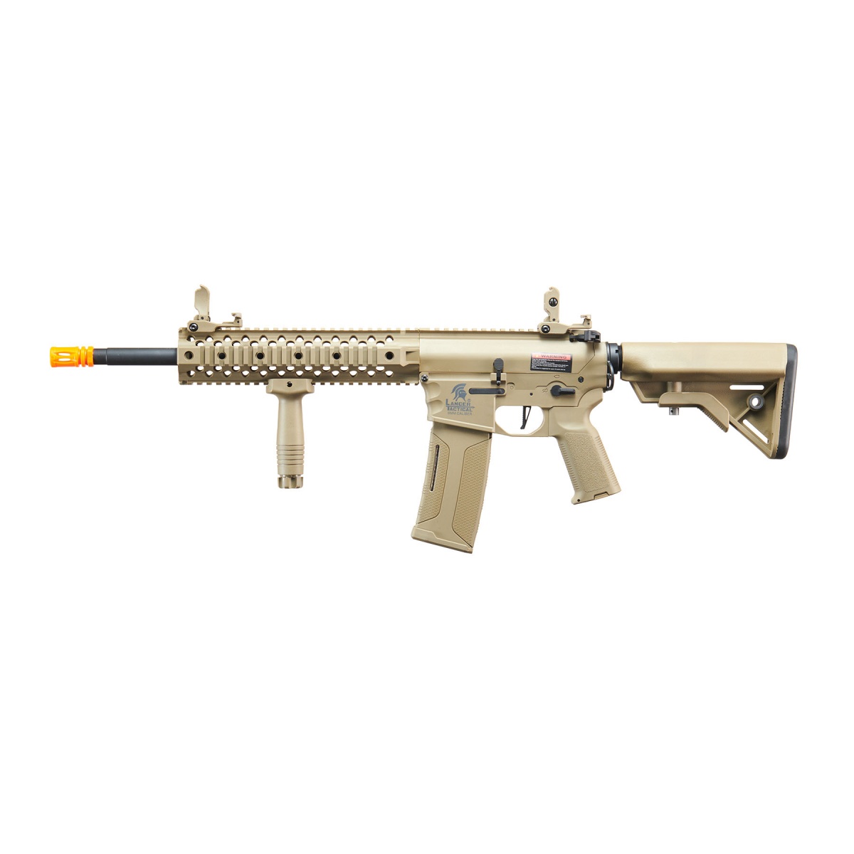The Lancer Tactical Gen 3 10 inch M4 Evo RIS Airsoft AEG in tan delivers a modernized take on the classic M4 platform, combining updated internals with a rugged, field-ready design. Built with a high strength nylon polymer frame and metal barrel assembly, this electric automatic airsoft rifle offers a durable yet balanced feel at 10 lbs. Out of the box, it fires at approximately 380 to 400 FPS with 0.20g BBs using the installed high FPS spring, while the included low FPS spring allows quick adjustment to 330 to 350 FPS through the buffer-tube-accessible quick change spring system. Internally, the full metal version 2 gearbox features an 18:1 steel gear set, steel-tooth polycarbonate piston, bearing spring guide, and a 19,000 RPM high torque motor, delivering consistent cycling and reliable performance. Accuracy is further enhanced by a polished 6.03mm tightbore inner barrel paired with the Kinetic TDC hop up system for precise, repeatable tuning.