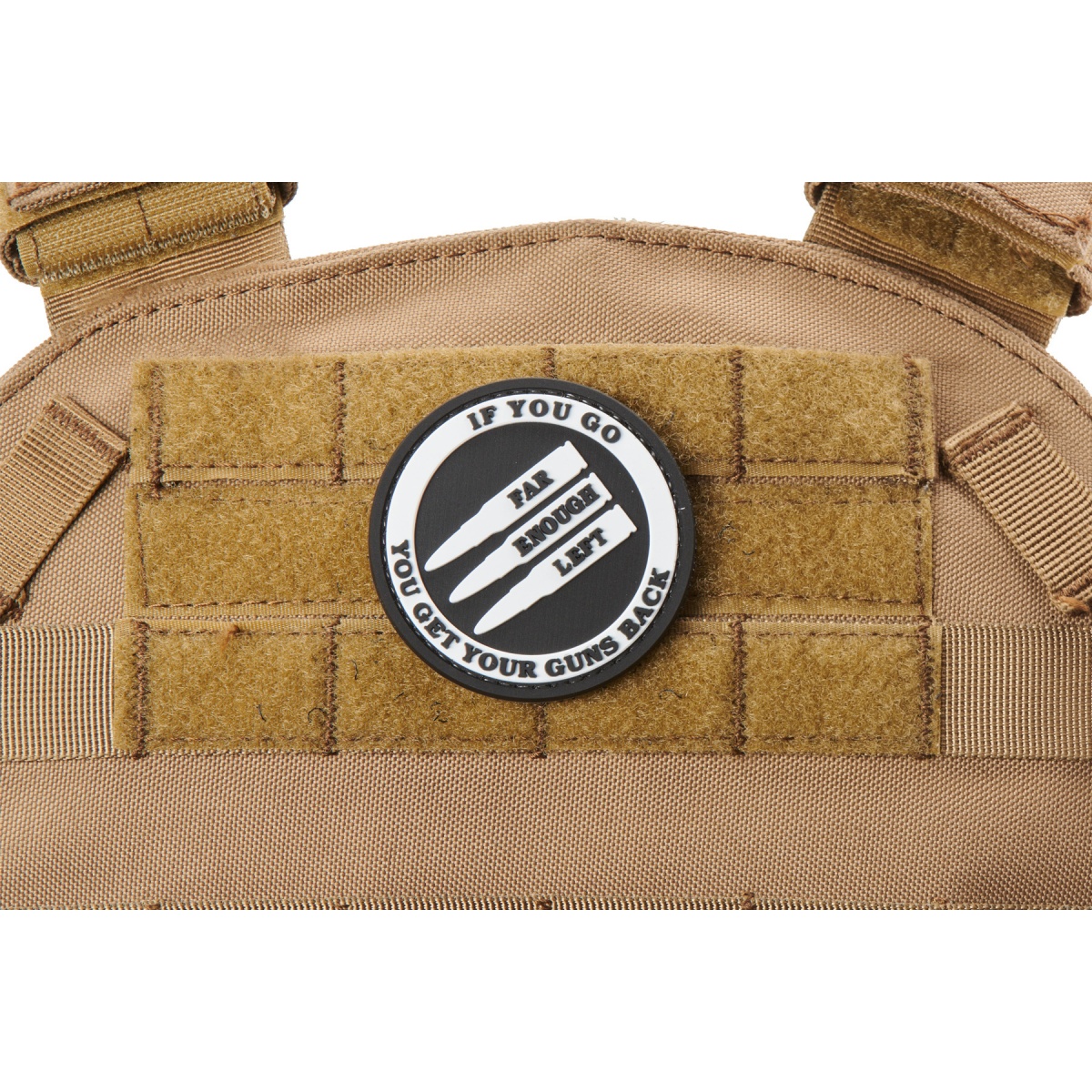 "If You Go Far Enough Left, You Get Your Guns Back" PVC Morale Patch (Color: White)