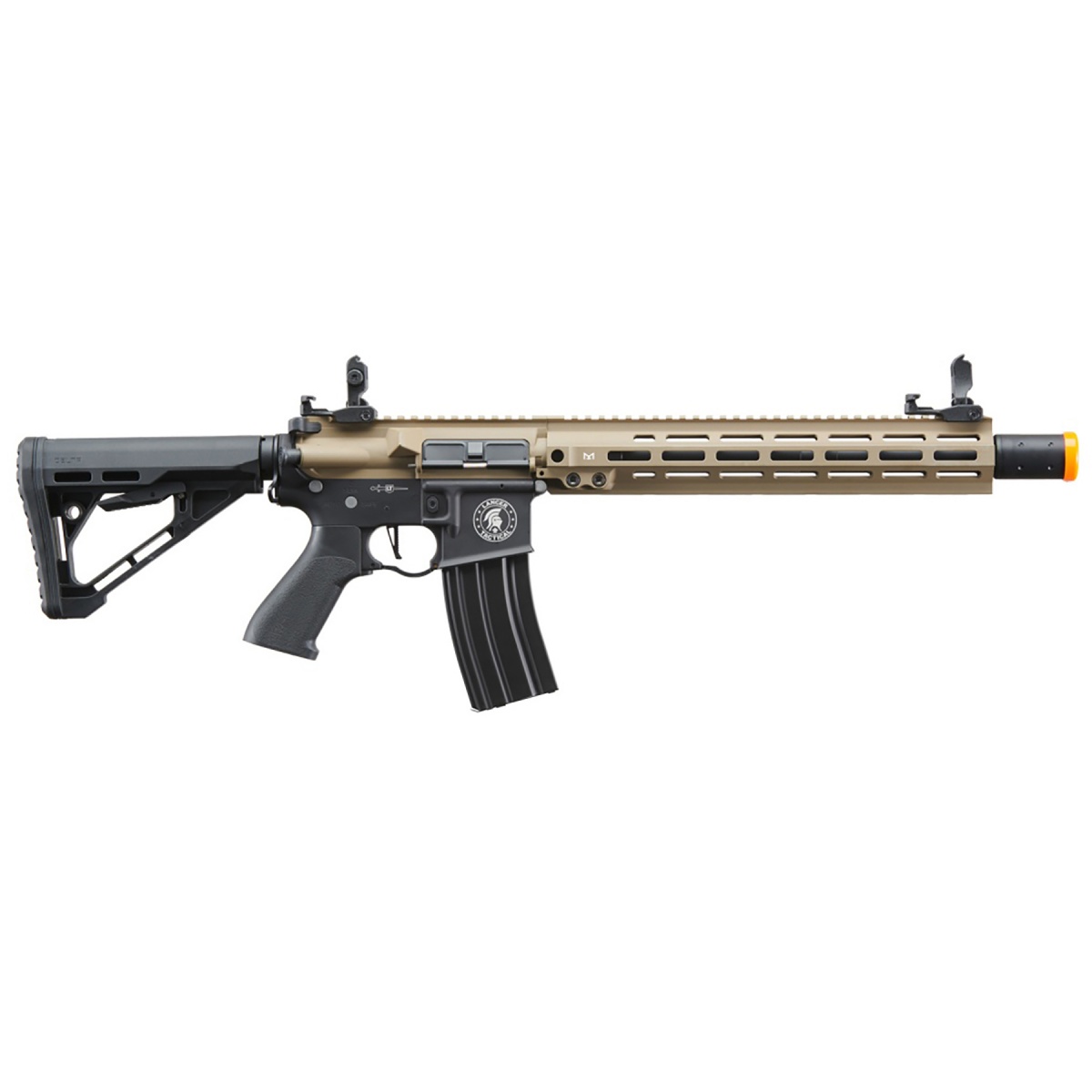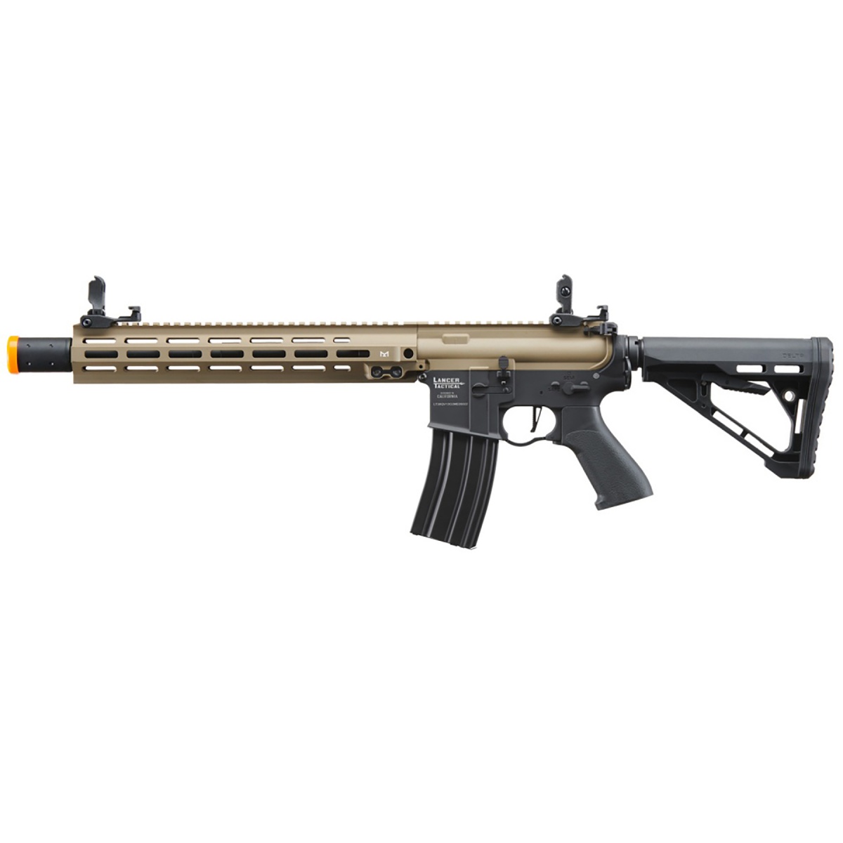 Lancer Tactical Blazer 13" M-LOK Proline Series M4 Airsoft Rifle with Delta Stock (Color: FDE Upper Receiver & Black Lower)