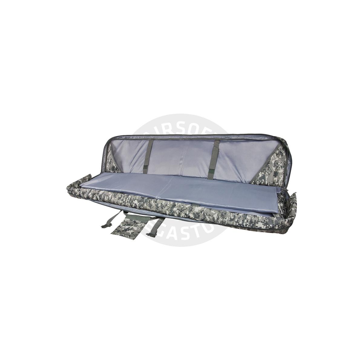 The primary compartment can accommodate 2 rifles 50 inches in overall length with a thick padded center divider and 4 hook and loop straps to properly secure each rifle
