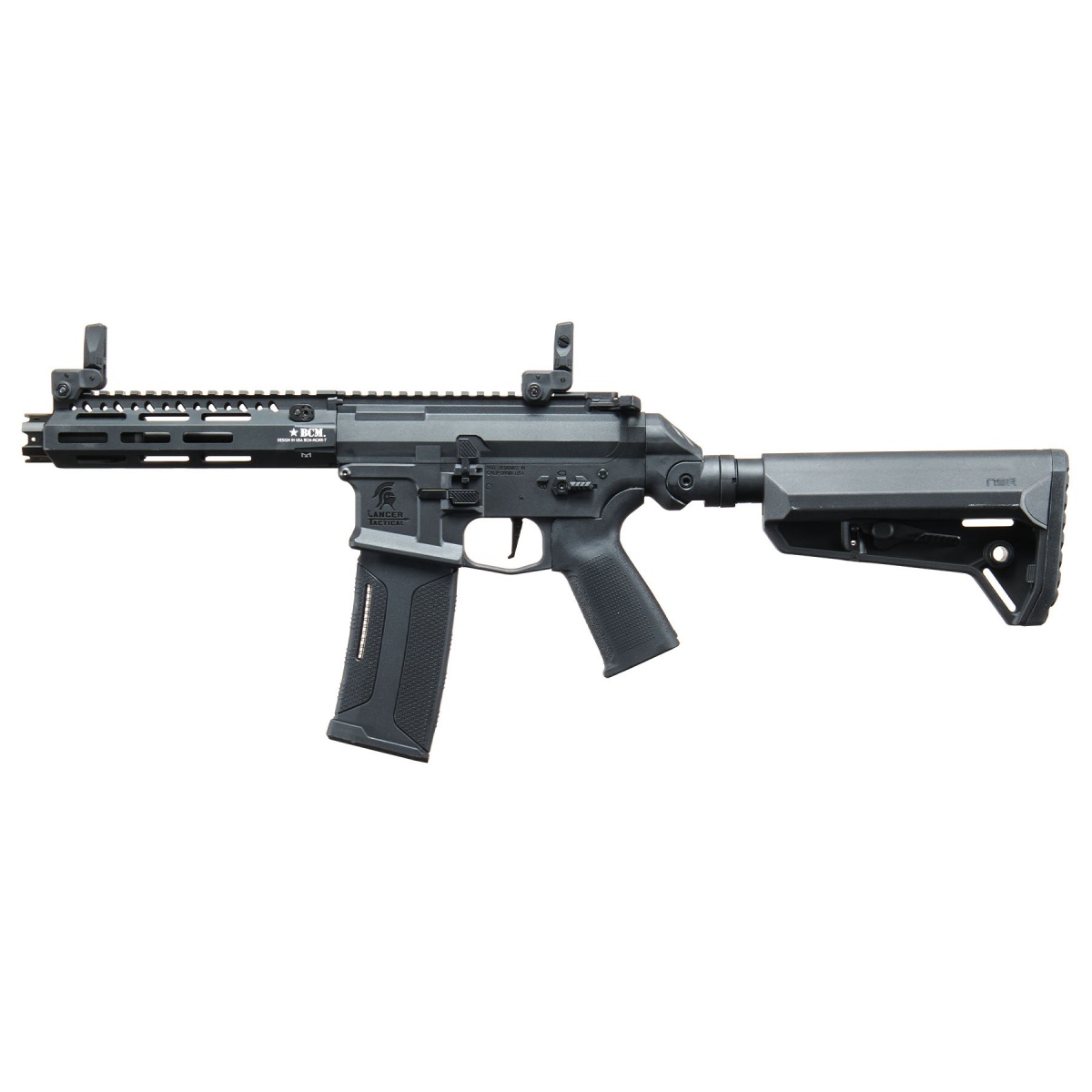 Internally, this custom AEG build is packed with performance upgrades designed to maximize reliability and trigger response. At the heart of the system is the Eshooter Kestrel V2 SE Electronic Trigger Unit, offering programmable firing modes including semi auto, burst, binary, full auto, and sniper delay. Wireless app configuration allows players to fine tune pre cocking, rate of fire, and trigger response while built in smart fuse protection safeguards the gearbox from electrical damage. The drivetrain is powered by SHS 13 to 1 steel gears, a Solink reinforced piston with 14 steel teeth, and a Maxx Model aluminum piston head for improved compression and consistent FPS. A Zion Arms brushless motor capable of 39,000 to 45,000 RPM ensures rapid trigger response and high speed cycling. The hop system is upgraded with a Maple Leaf MR Hop bucking and Lancer Tactical Kinetic TDC hop unit for improved range and stability with heavier BBs. Externally, the rifle features a BCM MCMR 7 inch M LOK rail, Battle Hawk outer barrel, and an Acetech Blaster tracer unit, creating a custom Lancer Tactical M4 airsoft rifle built for aggressive performance and standout tactical style.