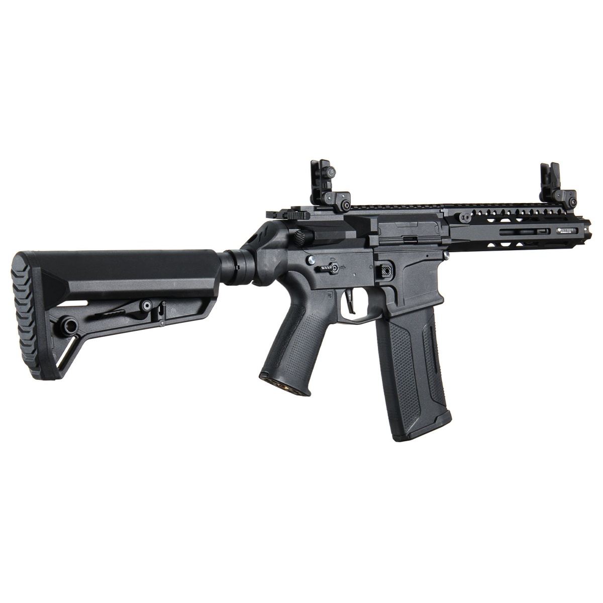 The Custom Night Crawler built on the Lancer Tactical Gen 2 Stalker M4 AEG platform is a high performance airsoft rifle engineered for players who demand precision, speed, and advanced customization. Starting with a billet style polymer receiver, the rifle offers excellent durability while maintaining lightweight handling ideal for both indoor CQB and outdoor field play. Ambidextrous fire controls and charging handle provide flexible operation for both left and right handed shooters, while the 7 slot M LOK handguard allows players to mount lights, grips, and other accessories to suit their tactical setup. A 6.03mm tightbore inner barrel paired with a rotary style adjustable hop up chamber delivers improved shot consistency and accuracy, helping players reach targets with greater precision. The rifle also features a functioning bolt catch that allows quick access for hop up adjustments during gameplay. With an adjustable NSR stock designed to accommodate larger batteries and a quick change spring system for simple FPS tuning, the Night Crawler provides adaptability for different field requirements while maintaining muzzle velocities around 370 to 390 FPS with 0.20g BBs.