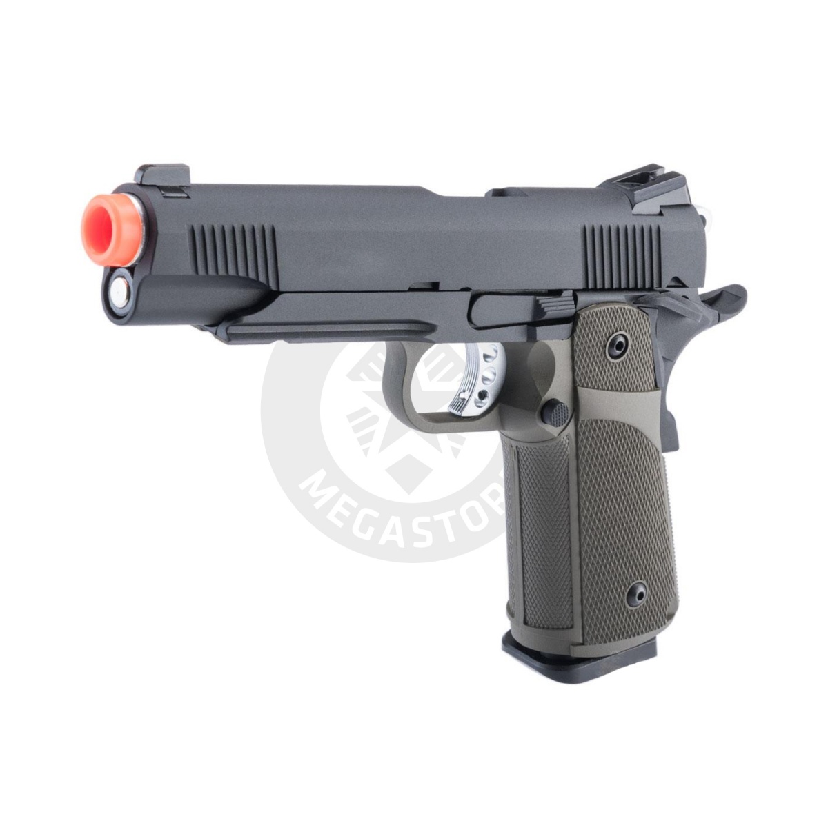Experience unparalleled performance with the KJW Full Metal Custom 1911 Tactical HI-CAPA Gas/CO2 Blowback. Featuring a full metal slide, Tanio Koba grip, and reinforced internals, it delivers power, accuracy, and reliability. With a 30+1 round capacity and ambidextrous safety, it's perfect for Airsoft training and simulation. Dominate the field with its light trigger pull and accessory-ready railed frame. Whether using green gas, red gas, or CO2, this pistol excels in every scenario. Elevate your gameplay with this top-notch, versatile sidearm from KJW.