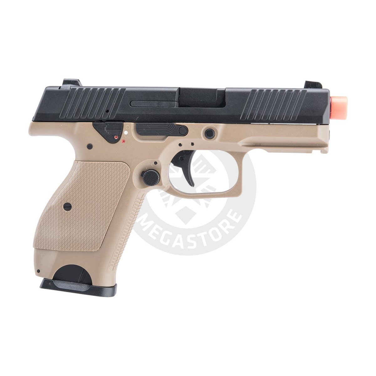 Introducing the Kizuna Works KW-15K Gas Blowback Pistol. Crafted with a high-quality aluminum alloy slide and a reinforced polymer frame, this airsoft pistol delivers exceptional performance. The ambidextrous magazine release and thumb safety cater to both right- and left-handed users. The picatinny rail allows for accessory attachment, while the ergonomic grip with rubberized texture ensures a comfortable hold. Featuring a steel hammer, sear, and valve knocker, this gas blowback pistol offers durability. With an internally threaded barrel for mock suppressors and tracer units, it provides customization options. Elevate your airsoft game with this top-tier pistol, exclusively available at Airsoft Megastore. Order now for a powerful and versatile sidearm that enhances your gameplay experience.