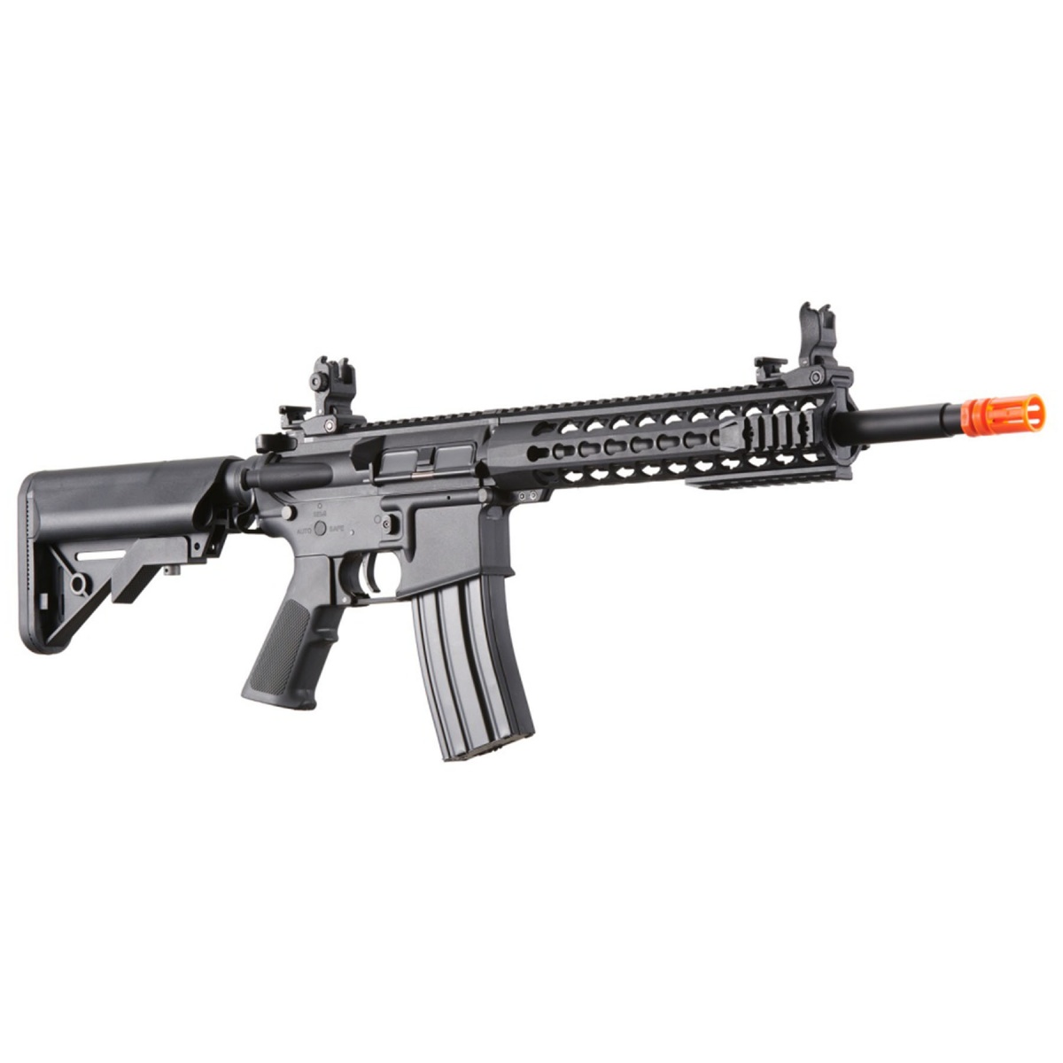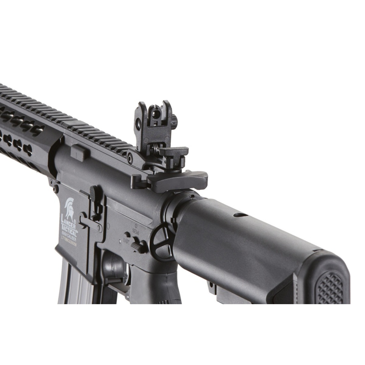 The Lancer Tactical Gen 2 10 inch Keymod M4 Carbine Airsoft AEG Rifle is a reliable electric automatic platform built for players who want consistent performance in a lightweight and durable package. Featuring a rugged nylon polymer frame paired with a metal barrel assembly, this airsoft rifle balances strength and maneuverability for field or CQB play. Shooting at approximately 370 to 395 FPS with 0.20g BBs, it delivers solid range and accuracy while remaining field legal at most outdoor and indoor fields. The adjustable hop up and polished 6.03mm tightbore inner barrel help maintain stable shot placement, making it an effective choice for both new and experienced airsoft players. A rear wired configuration supports a 9.6v NiMH nunchuck battery via small Tamiya connector, allowing easy battery access while keeping the setup clean and streamlined. At the core of this airsoft gun is a full metal Version 2 gearbox equipped with a quick change spring system, allowing players to easily tune FPS to meet changing field requirements. Ultra smooth 8mm ball bearings, an 18 to 1 steel gear ratio, and a 19k high torque motor provide dependable cycling and long term durability during extended play. The 10 inch KeyMod handguard offers ample mounting space for KeyMod compatible accessories, while the full length 20mm Picatinny top rail supports optics, lights, lasers, and PEQ style accessories. Flip up front and rear iron sights deploy quickly for fast target acquisition, and the multi position retractable stock ensures comfort for players of different sizes. With a 300 round high cap magazine and proven Lancer Tactical Gen 2 internals, this airsoft AEG rifle is a strong choice for players seeking performance, adaptability, and value in a modern M4 style airsoft platform.