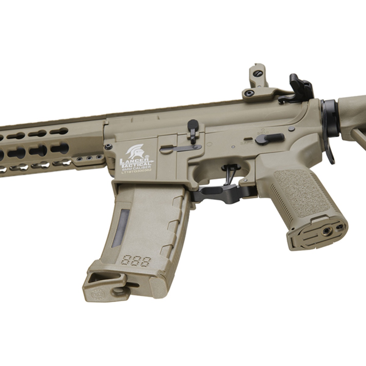 The Lancer Tactical Gen 3 10 inch Keymod Airsoft M4 Carbine AEG Rifle in tan delivers a modern, performance driven platform designed for players who want reliability, modularity, and strong out of the box performance. Built with a high strength nylon polymer frame and a metal barrel assembly, this electric airsoft rifle balances durability with a manageable 5 lb overall weight. Semi automatic, full automatic, and safe firing modes make it suitable for a wide range of airsoft play styles, from casual skirmishes to competitive field use. Muzzle velocity reaches 380 to 400 FPS with 0.20 g BBs using the installed high FPS spring, while the included low FPS spring allows easy tuning for fields with stricter limits. An adjustable rotary hop up paired with a 6.03 mm tightbore inner barrel helps deliver consistent accuracy and improved range, making this rifle a strong choice for players upgrading to a Gen 3 platform.