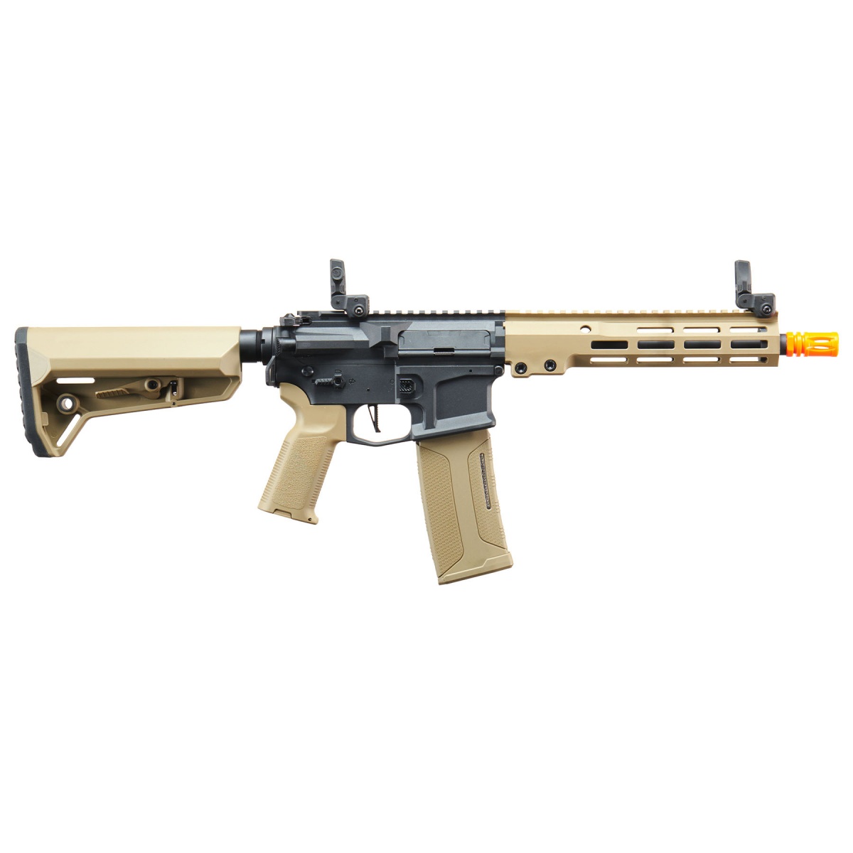 Built for real play use, this tan Lancer Tactical AEG includes practical details that matter during long sessions and high-mobility games. The NSR adjustable retractable stock improves shoulder fit and supports larger battery configurations, while the rear-wired Deans connector improves electrical efficiency and helps optimize stock space. Upgrade Faxon flip-up front and rear sights with quick deploy release are included for immediate backup sighting, and a QD sling point adds carry flexibility for transitions between positions. Compatibility with most M4 and M16 style AEG platforms and most M4 magazines makes this rifle easy to integrate into existing loadouts, whether you are building a new setup or expanding your current kit. With an included 11.1V Li-Ion battery and charger, this airsoft rifle is ready to run with fewer extra purchases up front. For players shopping a tan M4 AEG, electronic trigger airsoft rifle, M-LOK Lancer Tactical platform, or a ready-to-play electric airsoft gun with modern features, this model delivers dependable performance and smart functionality straight out of the box.