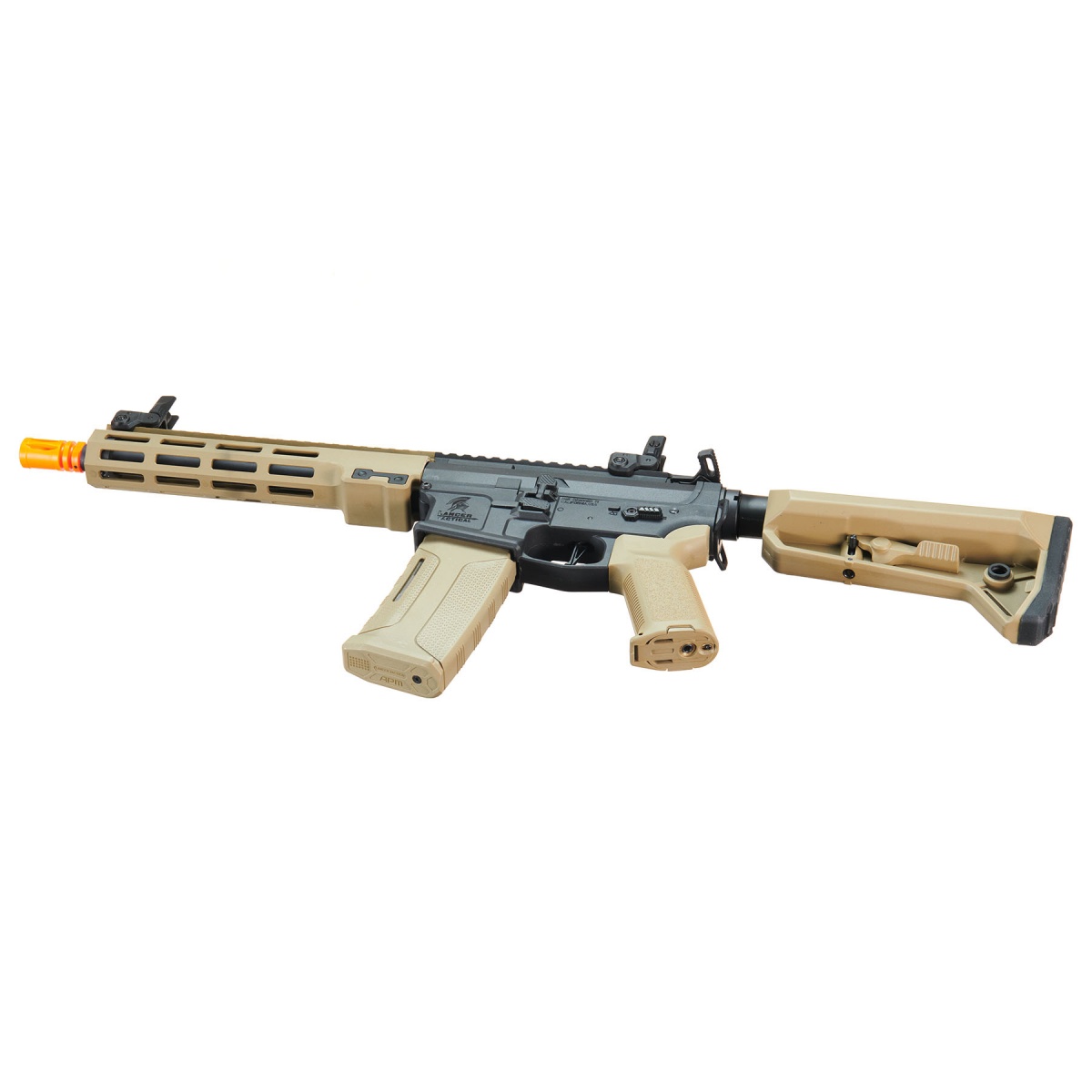 The Lancer Tactical Gen 3 Stalker 10" M4 AEG Airsoft Rifle - (Tan) is a versatile, field-ready electric platform built for players who want modern controls, strong handling, and practical upgrade value in one package. Designed on the Gen 3 Hellion M-LOK 10 M4 AEG format, this rifle combines a nylon polymer frame with a metal barrel assembly to balance durability and lightweight maneuverability. The pre-installed Zion Arms electronic trigger unit adds programmable burst modes and responsive firing behavior, while ambidextrous controls, ambi mag release, and ambi charging handle support fast manipulation for both left- and right-handed users. A functioning bolt catch allows quick access for hop-up tuning, and the adjustable rotary hop-up unit helps fine-tune range and accuracy for different BB weights and field conditions. The precision CNC machined 10 inch free-float slim M-LOK handguard, full-length 20mm top Picatinny rail, and Picatinny/Weaver rail sections provide flexible space for optics, lights, and mission-specific accessories.