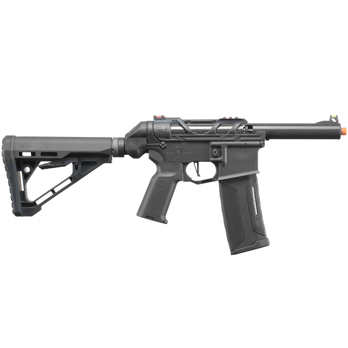 Introducing the Lancer Tactical AirTac Customs Gen 3 - (Black), a cutting-edge AEG that redefines airsoft warfare. Crafted with a high-strength full polymer construction, this lightweight yet durable masterpiece boasts a Carbon Fiber Inner/Outer Barrel and Polymer Lower for unparalleled performance. The Gen 3 features a Zion Arms Nebula Programmable Mosfet and Lancer's fast trigger, delivering a relentless barrage of BBs with programmable burst modes.