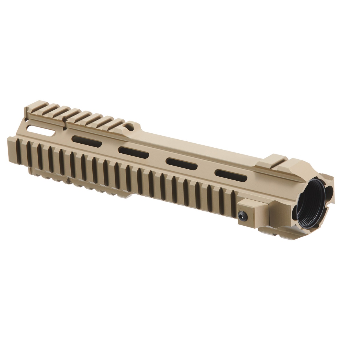 Outfit your rifle with the Lancer Tactical AEG Gen 4 10 Inch M4 L119A2 Rail, a high performance upgrade designed for players who demand both realism and customization in their airsoft builds. Inspired by the legendary L119A2 platform, this 10 inch rail system delivers a modern tactical look with the durability and function serious players need. Built from solid metal, it provides a rugged, reliable mounting surface for all your mission critical attachments. The hybrid M LOK and Picatinny design offers exceptional flexibility, allowing you to attach a wide range of accessories including vertical grips, lights, lasers, and more. Whether you're building a British special forces inspired loadout or looking to upgrade your current setup, this rail brings elite level function and style to your airsoft rifle. Designed for compatibility with most AEG platforms, the Lancer Tactical L119A2 rail features partial side rails that accept all standard 20mm Picatinny accessories while offering clean lines and weight savings where you need them. The 10 inch length strikes a perfect balance between maneuverability and accessory space, ideal for both CQB and outdoor gameplay. Its tan tactical finish blends seamlessly with most rifle builds and adds a professional edge to your loadout. Durable construction ensures dependable performance under pressure, while the modular design makes it a favorite for players who constantly evolve their gear. Available now for airsoft players who want authentic looks, modern modularity, and dependable performance. The Lancer Tactical Gen 4 L119A2 rail is your go to solution for the perfect tactical upgrade.