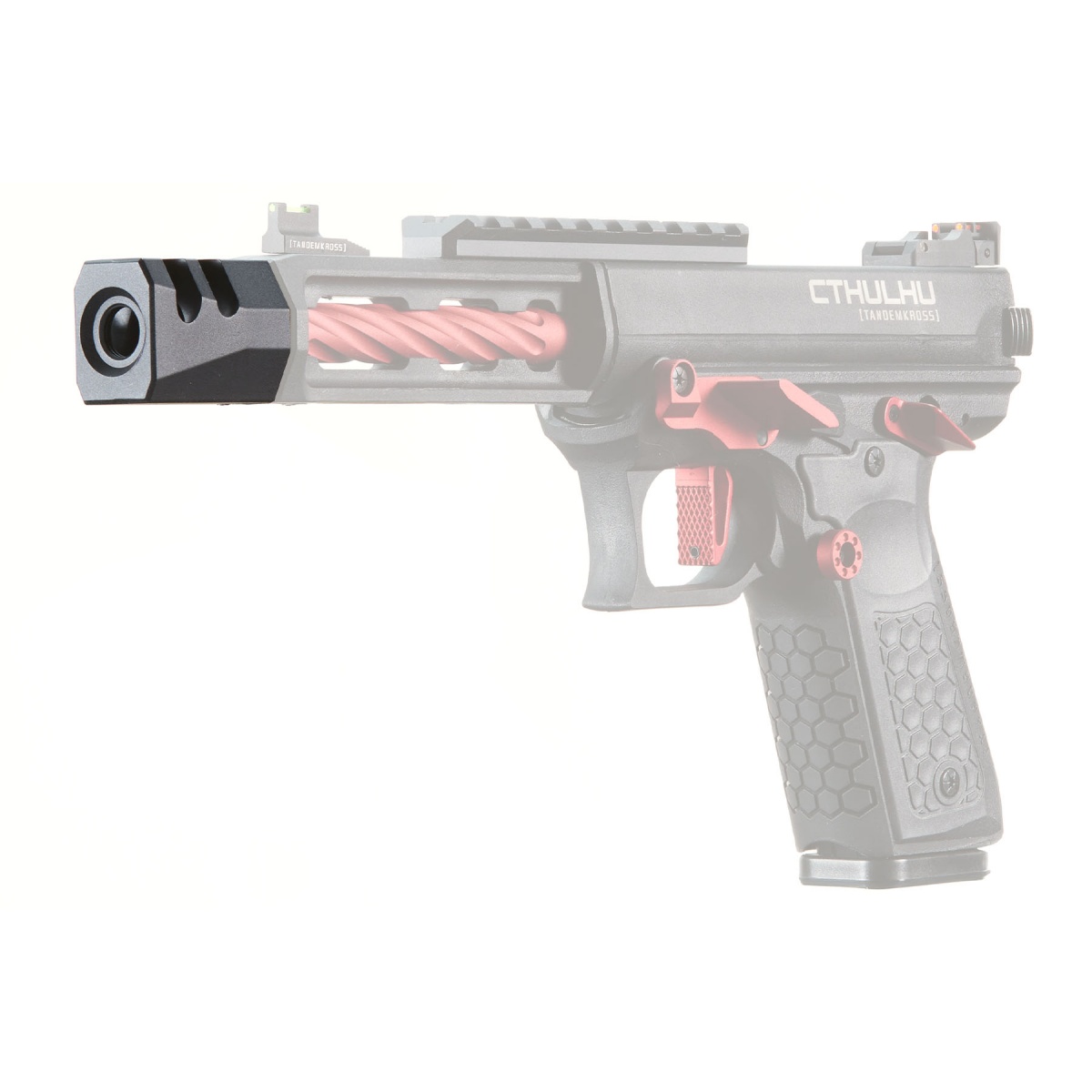 The Lancer Tactical x Tandemkross CTHULHU Compensator Gas Blow Back Pistol accessory is a purpose-built performance upgrade designed for airsoft players who want tighter control and faster follow-up shots from their GBB sidearm. Precision machined from durable metal, this barrel-mounted compensator is engineered to reduce muzzle rise during rapid firing, helping keep sights on target shot after shot. Its compact, squared profile adds an aggressive competition-inspired look without introducing unnecessary bulk or front-end weight. Designed specifically for the Tandemkross CTHULHU gas blowback pistol and compatible platforms, this compensator mounts securely to the barrel for consistent alignment and reliable operation. Whether running semi-auto strings or controlled full-auto bursts, the added stability improves overall shooting confidence and consistency in both training and skirmish environments.