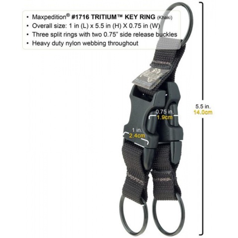 Maxpedition Tritium High Quality Nylon Key Ring - KHAKI