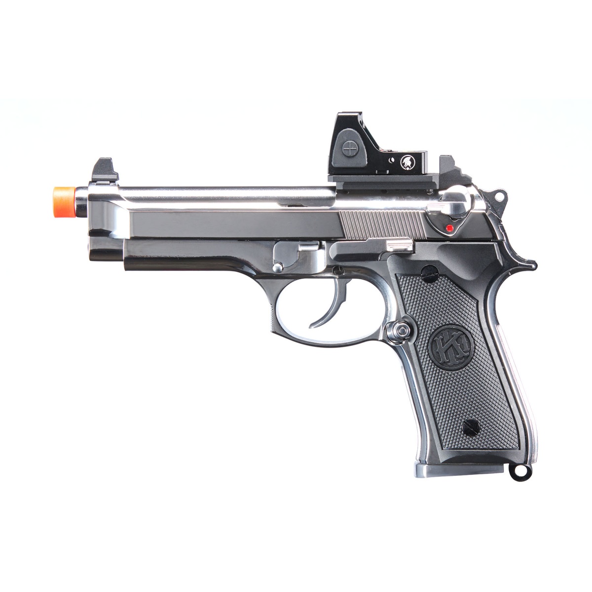 KLI KL-92 Platinum 6mm Dual Power CO2/Gas Blowback Airsoft Pistol Red Dot Combo - (Platinum)