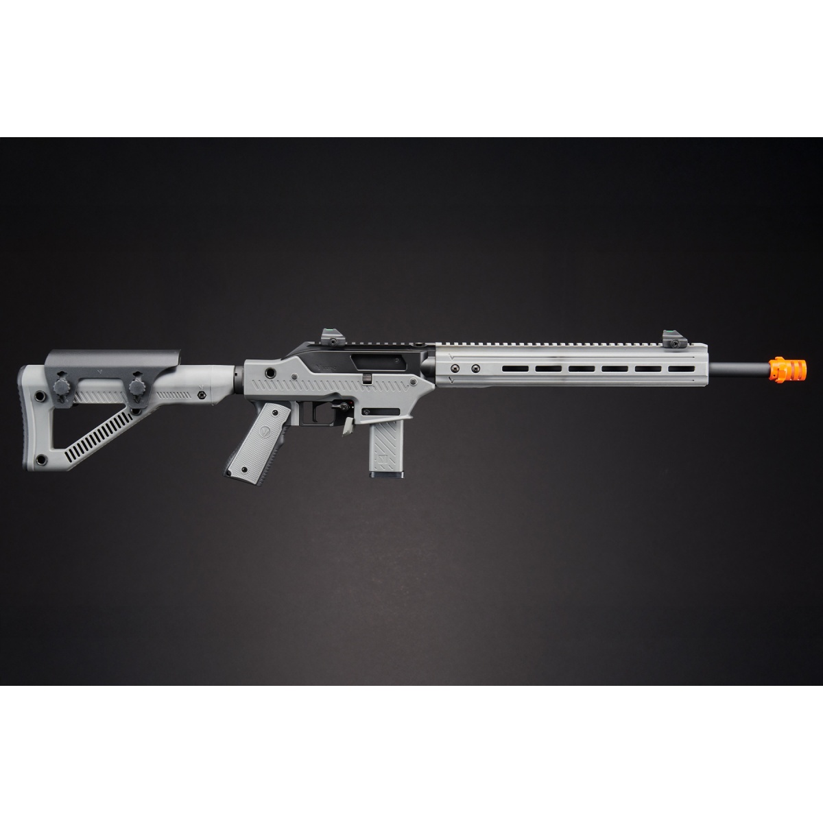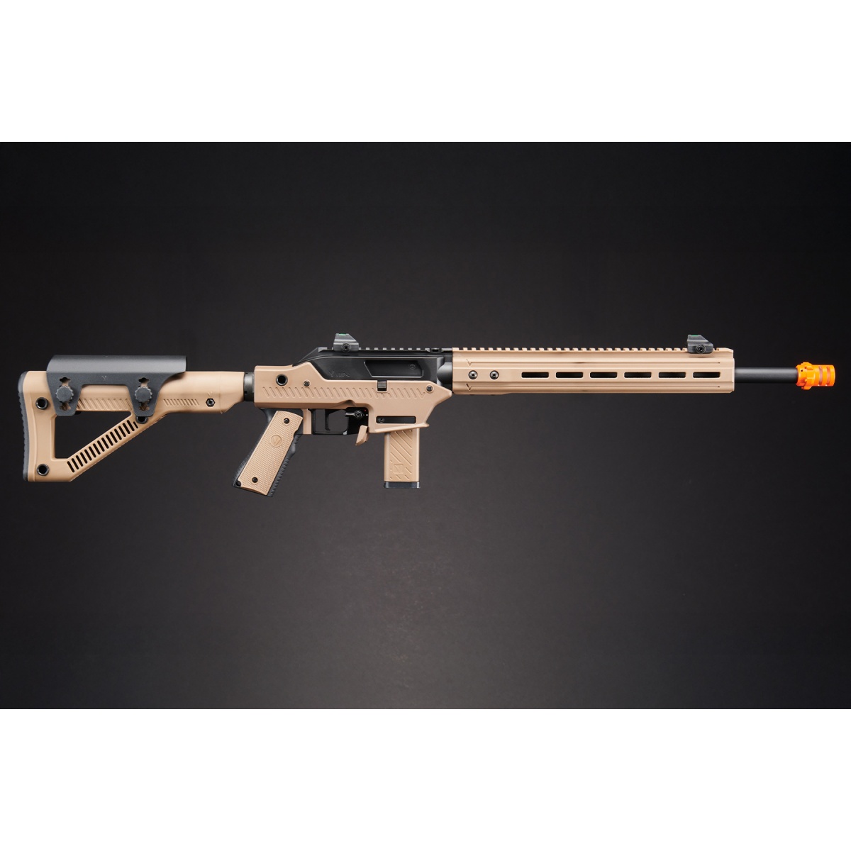 The Vorsk VMP-2D GBB Airsoft Rifle is a high-performance, semi-auto-only gas blowback rifle purpose-built for precision and power. Engineered as part of Vorsk's modular platform series, the VMP-2D excels as a designated marksman setup with its 410mm inner barrel and 1.9-joule muzzle energy, delivering long-range accuracy with consistent 450 FPS performance using 0.20g BBs. The rifle features realistic blowback action and ambidextrous fire controls that mirror real steel ergonomics, giving both left- and right-handed shooters full tactical confidence. Its rotary disc hop-up with TDC/VSR system provides precise control over trajectory, accessed conveniently from the upper flat-top rail. Whether you're engaging from a distance or outfitting a semi-locked field loadout, the VMP-2D delivers pinpoint consistency and realism. Built from premium materials, the VMP-2D combines a CNC-machined aluminum alloy upper with a high-impact polymer lower and handguard for a lightweight yet rugged frame. The 20mm flat-top rail includes front and rear fiber optic sights and additional rail space for scopes, lights, or lasers. The fixed DMR-style stock comes with an adjustable cheek riser, while the 6-position extendable buffer tube offers custom fitment. Sling compatibility is ensured with four ambidextrous QD points. This rifle accepts 14mm barrel attachments like suppressors or tracer units and is supplied with a 20-round gas magazine, fully compatible with other VORSK VMP mags. Ideal for players seeking reliable, realistic airsoft rifles with modular adaptability, the VMP-2D is a top-tier choice for outdoor precision roles and training platforms alike. With its GBB system, AR15 spec modularity, and field-tuned performance, this rifle is ready to dominate at distance while staying true to a clean, semi-automatic platform.