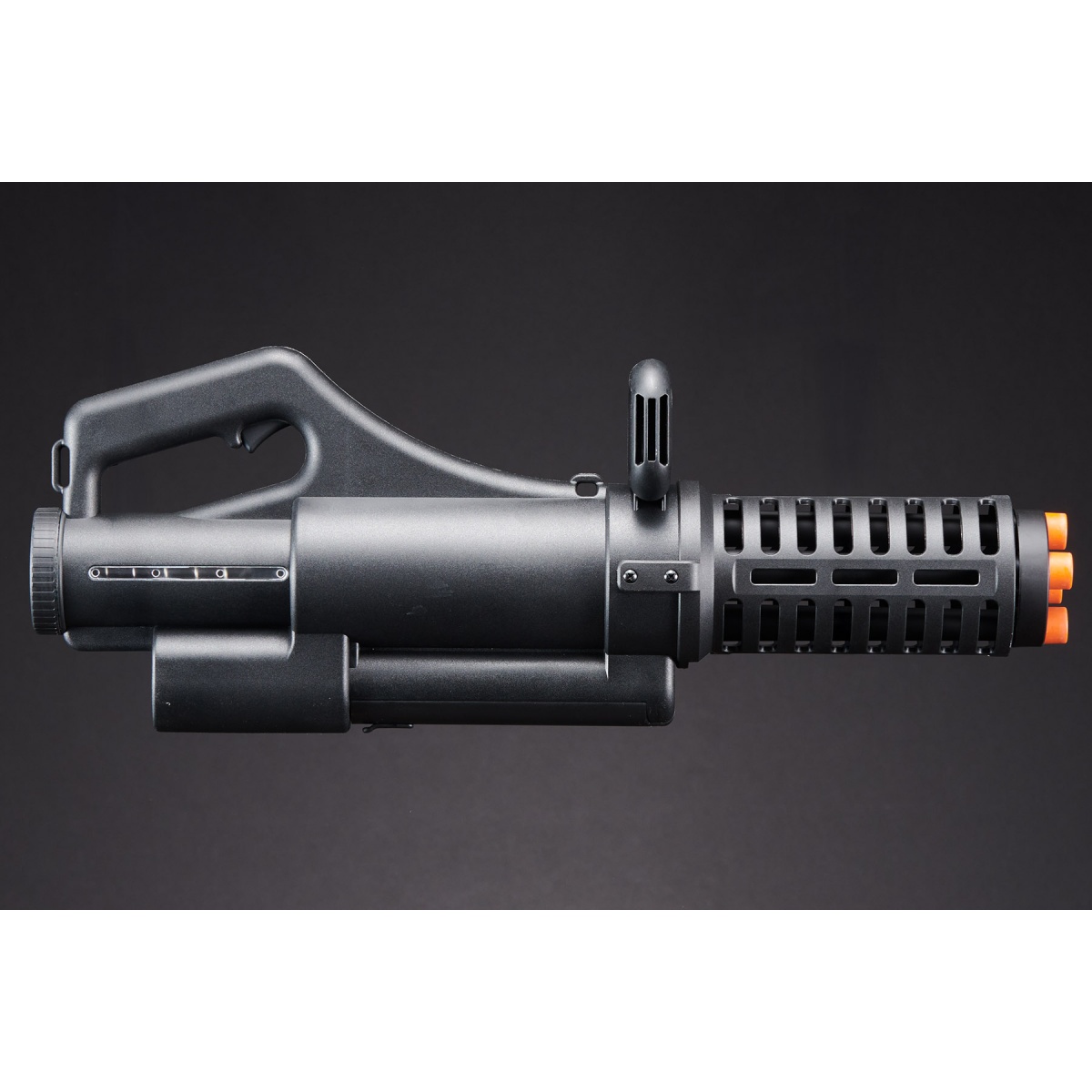 The Well Pro Micro M134 Chainsaw Electric Rotating Gatling Mini Vulcan AEG Airsoft in Black delivers unmatched firepower in a compact and aggressive platform. Styled after the iconic M134 Vulcan, this airsoft mini gun features a chainsaw style grip for dynamic control and visual intimidation. Its electric powered rotating 5 barrel system unleashes a jaw dropping rate of fire at 40 BBs per second, making it perfect for suppressive fire and high energy gameplay. The lightweight polymer body is paired with a metal outer barrel and reinforced nylon fiber furniture, offering both durability and mobility. Whether you are storming CQB arenas or creating chaos in the field, this M134 mini Vulcan is ready to dominate. Equipped with a massive 1200 round magazine tube, this AEG ensures extended engagements without constant reloads. The M LOK handguard supports tactical upgrades like foregrips, flashlights, or lasers, while the 20mm Picatinny top rail provides space for optics and accessories. Shooting between 299 and 315 FPS, this airsoft Gatling gun is ideal for close quarter scenarios where speed and volume matter most. It is compatible with up to 11.1V 1200mAh Li Po batteries, with 7.4V recommended for optimal operation. Whether you are building a themed loadout or simply looking to overwhelm your opponents, the WELL PRO M134 Chainsaw Mini Vulcan offers high performance, tactical flexibility, and undeniable battlefield presence. Available now, this is the ultimate airsoft support weapon for players who want to turn heads and take control.