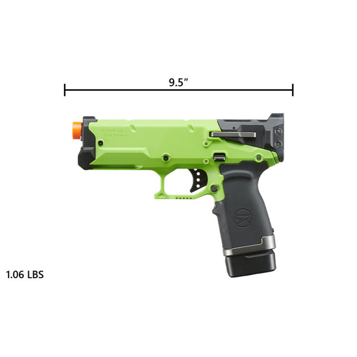 • Spring-powered, mag-in handle pistol